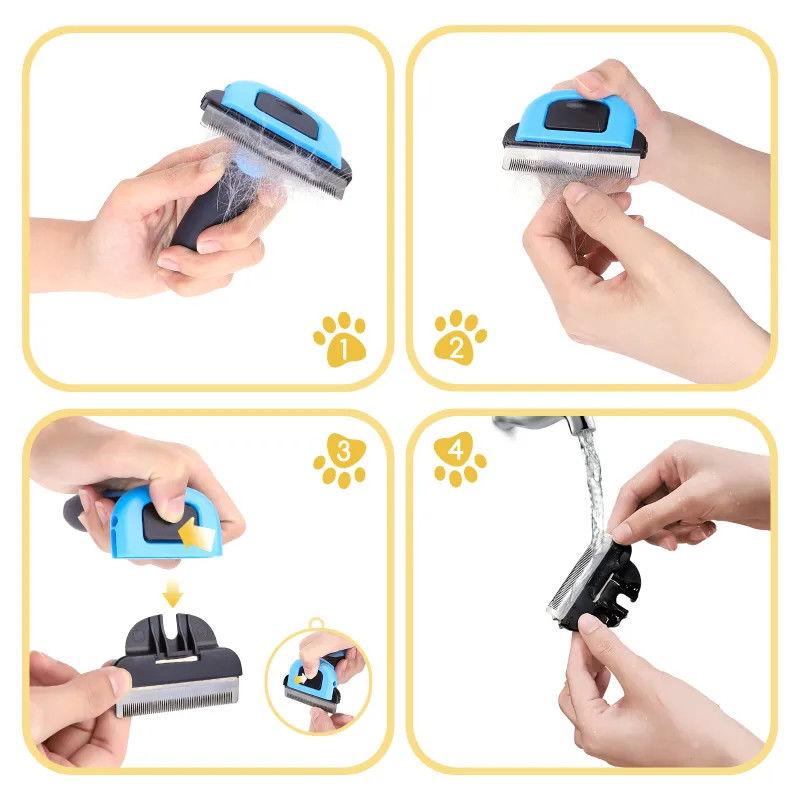 Precyzyjny grzebień ze stali, odporny na rdzę, usuwa luźne i przerzedzone włosy, materiał przyjazny dla środowiska, nietoksyczny i bezpieczny, antypoślizgowy uchwyt zapewnia wygodne i trwałe użytkowanie