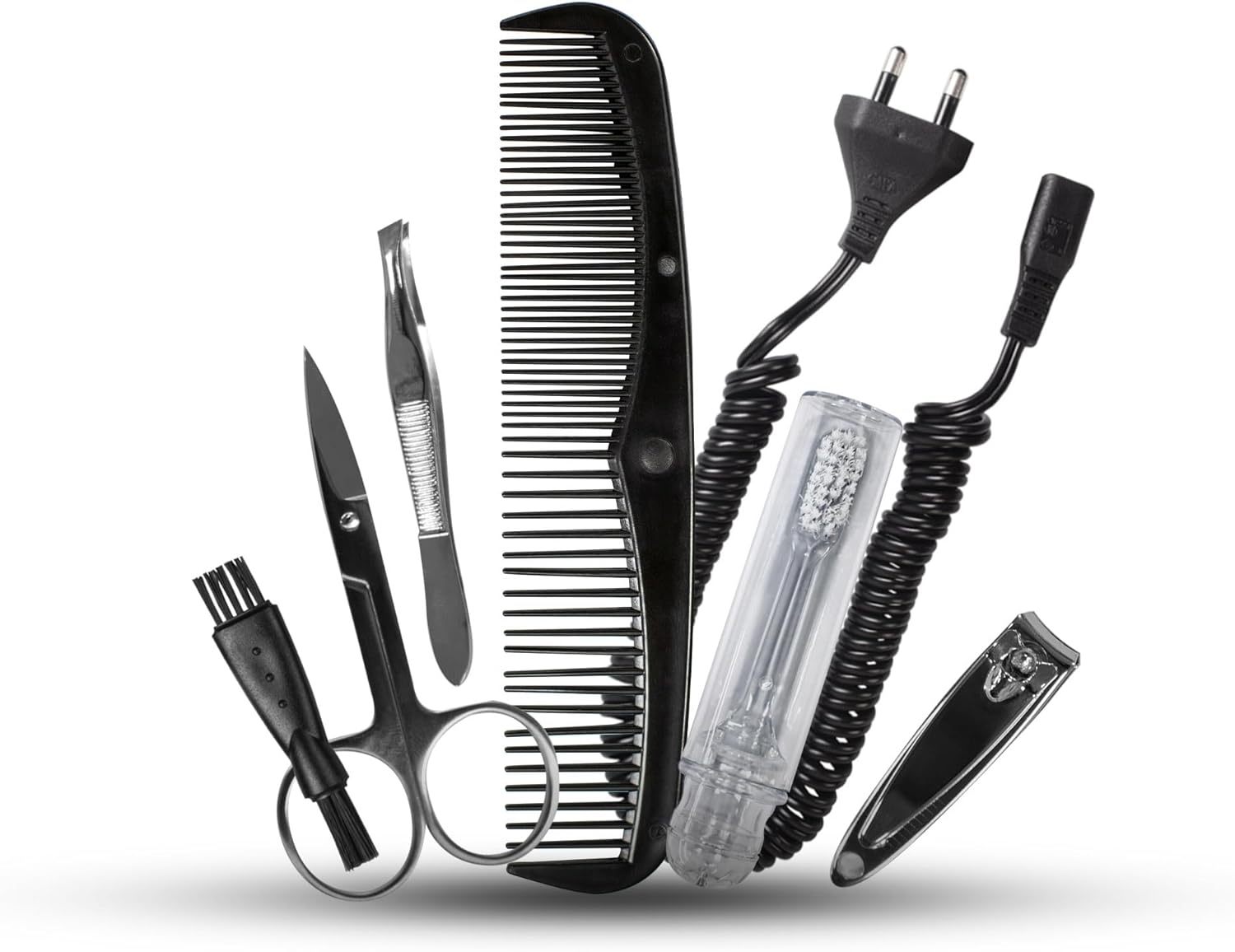 - Pełne wyposażenie 7w1: Wszystko, czego potrzebujesz do higieny i pielęgnacji twarzy oraz dłoni w jednym poręcznym opakowaniu! ✂️ 🪥