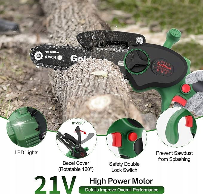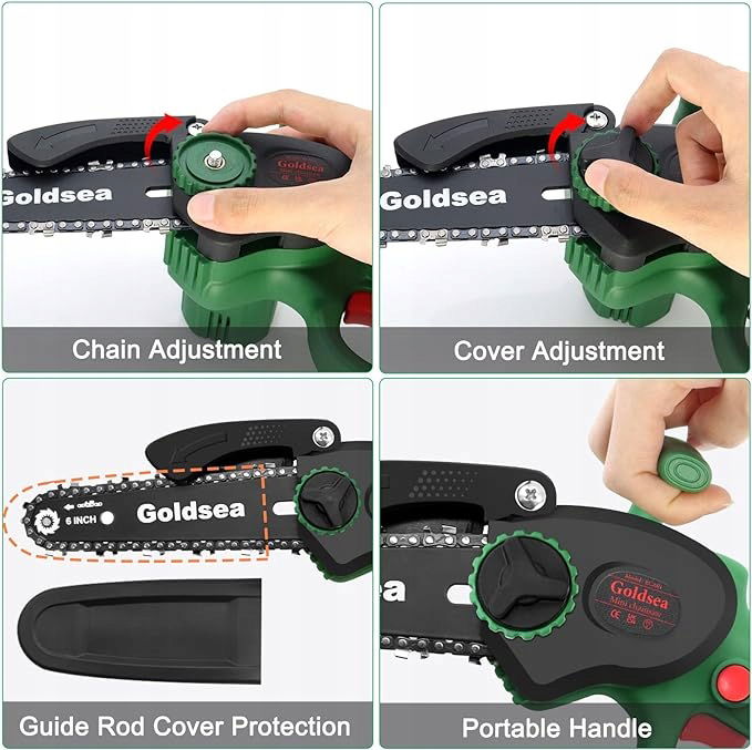 Goldsea Mini piła łańcuchowa to niezawodne narzędzie, które ułatwi Ci prace ogrodowe. Dodaj ją do swojej kolekcji narzędzi i ciesz się wygodnym i efektywnym przycinaniem gałęzi.