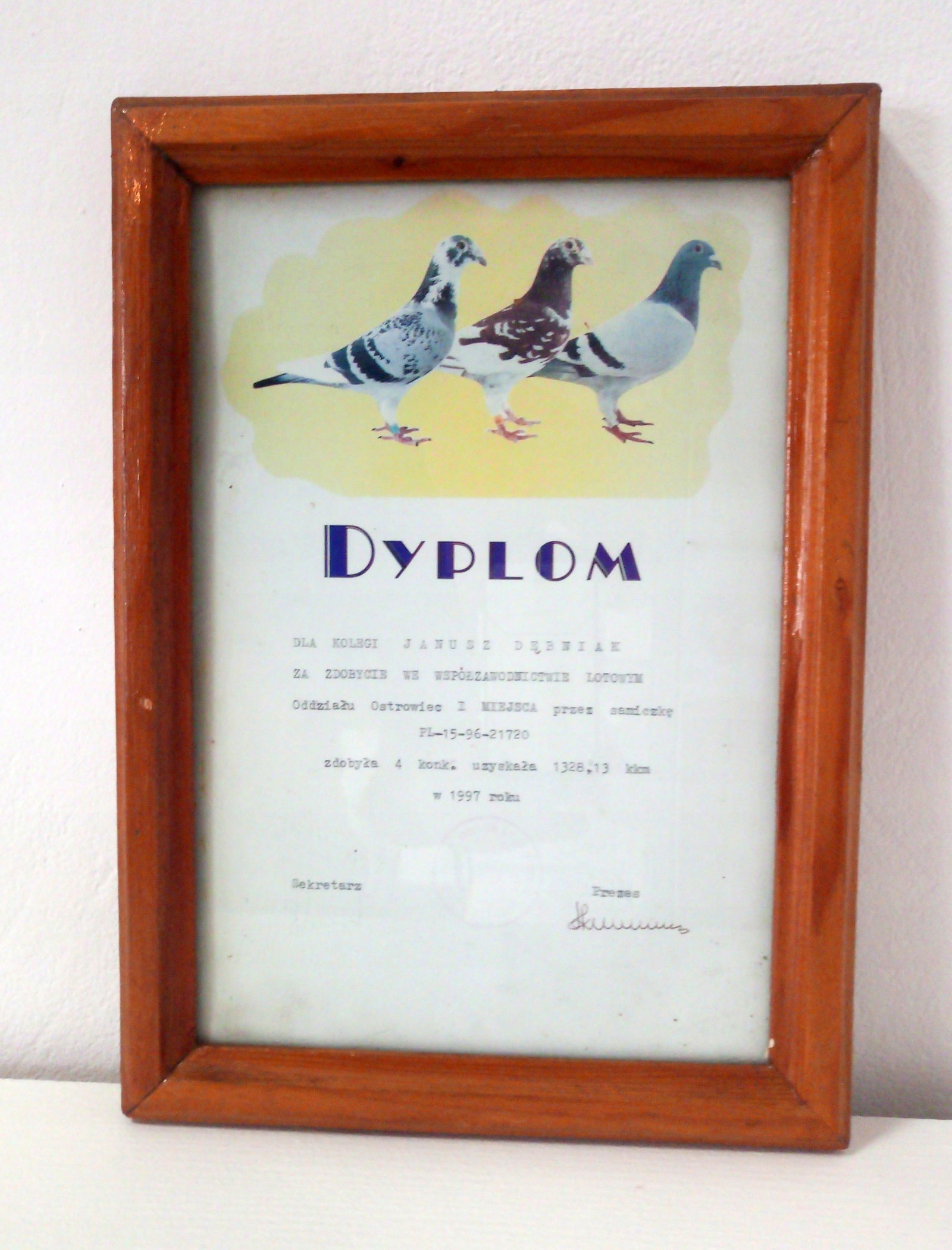 Do sprzedania widoczny na zdjęciu dyplom oprawiony w ramę z szybą.