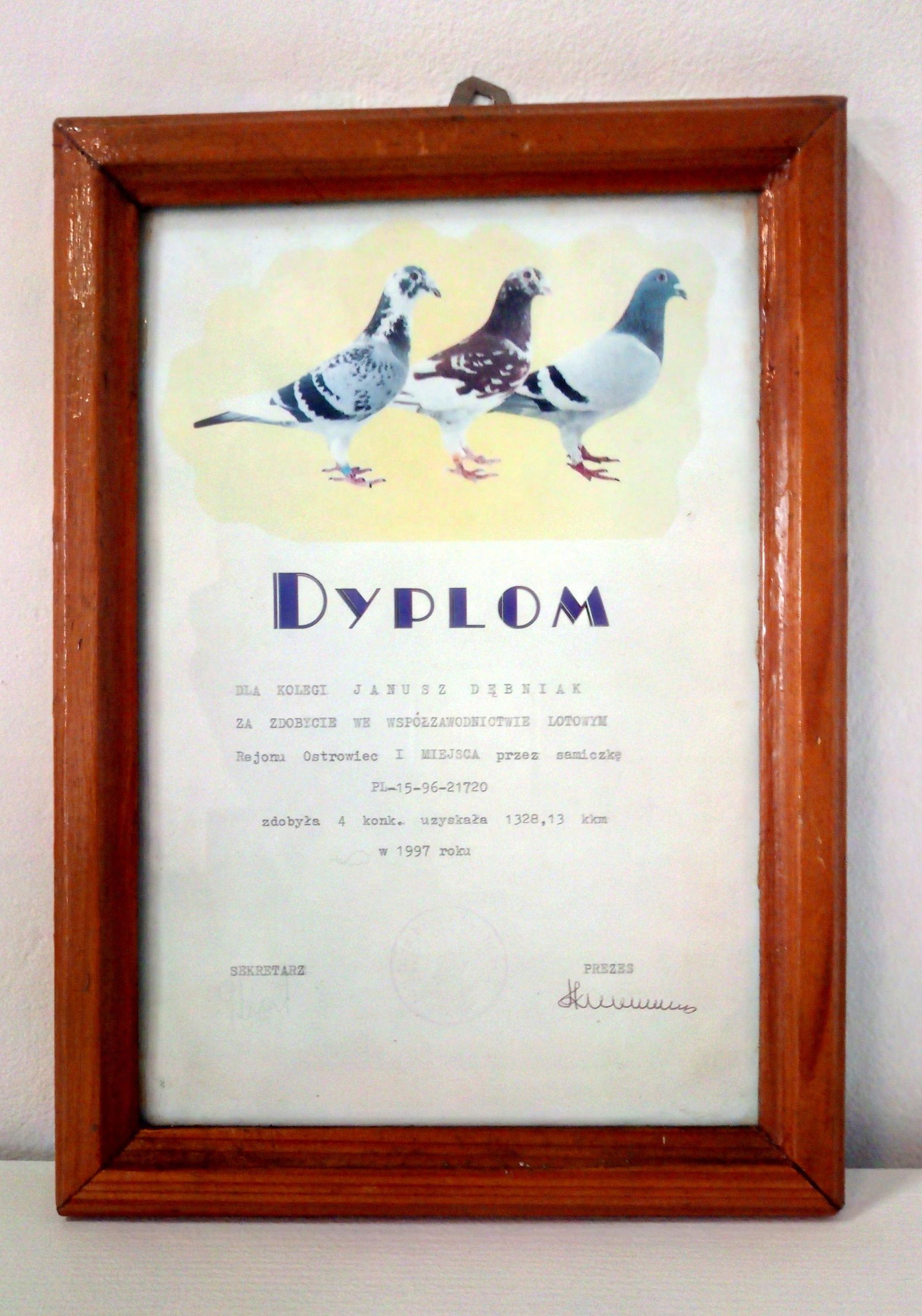 Do sprzedania widoczny na zdjęciu dyplom oprawiony w ramę z szybą.