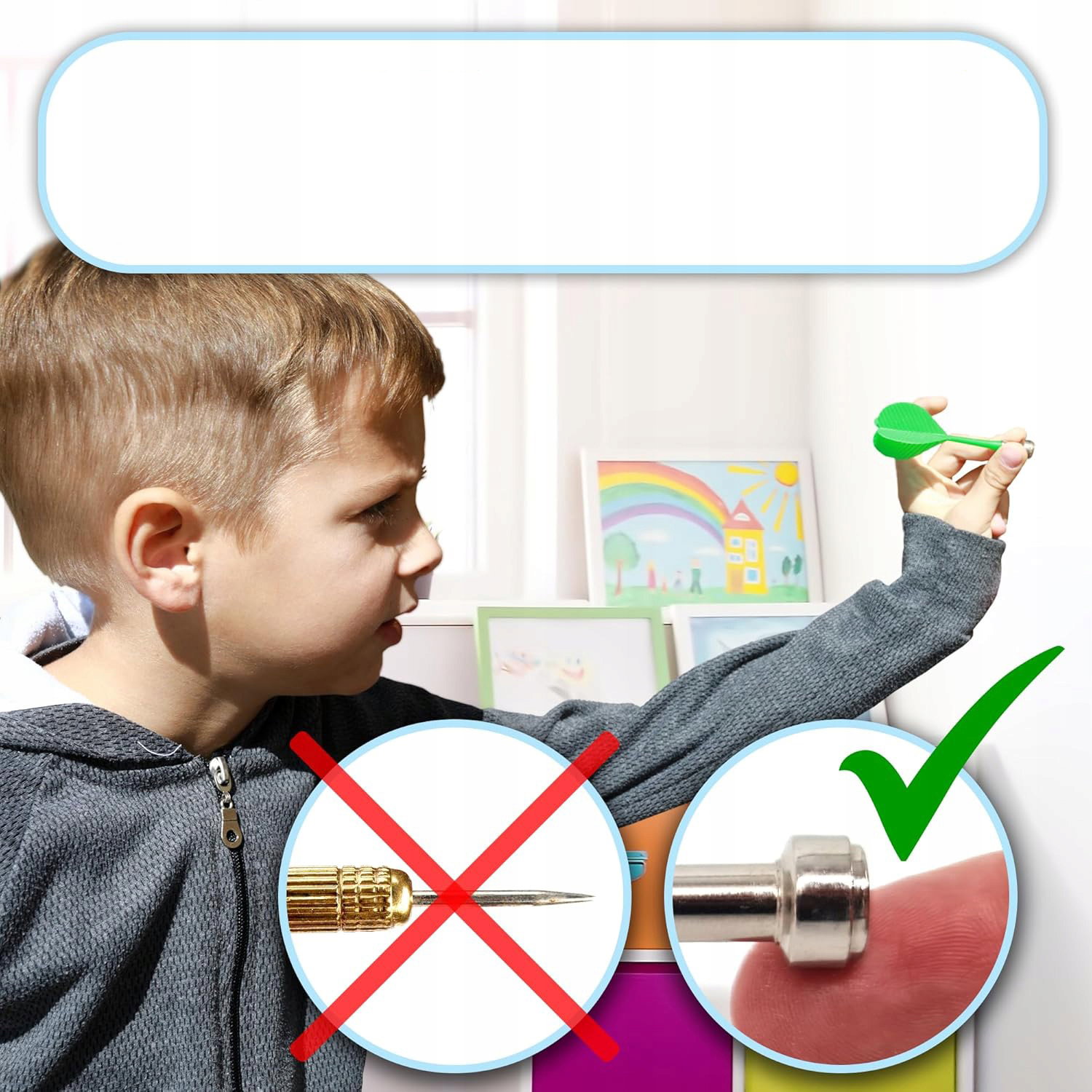 Brak ostrych końcówek eliminuje ryzyko skaleczeń i uszkodzeń ścian. Większy rozmiar tarczy oraz mocne magnesy pomagają utrzymać rzutki w obrębie planszy, minimalizując bałagan i potencjalne szkody w pomieszczeniu.