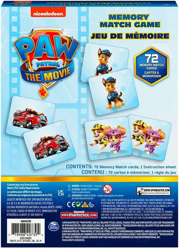 Odkryj ekscytującą grę pamięciową z bohaterami Psi Patrol w wersji filmowej! Gra Memory to doskonała zabawa, która rozweseli Twoje dziecko i pomoże w ćwiczeniu koncentracji oraz pamięci. Idealna dla małych fanów Psi Patrol, którzy chcą bawić się i uczyć jednocześnie!