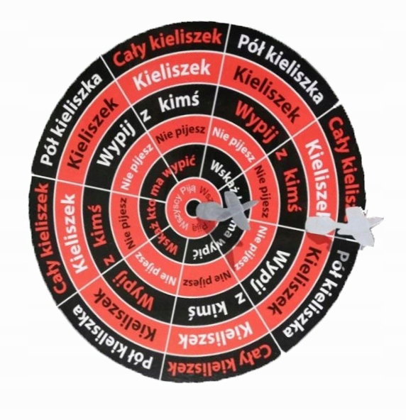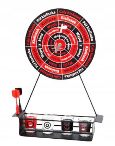 Składa się z tarczy, czterech rzutek magnetycznych i czterech kieliszków dla dwóch drużyn. Tarcza, która stoi prosto dzięki podparciu, podzielona jest na kilka sektorów. Jeśli twoja lotka przyczepi się do jednego z nich, będziesz musiał wykonać opisane zadanie: