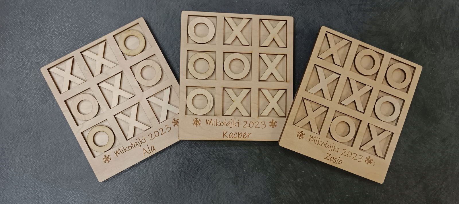 Dzięki prezentowanemu zestawowi, możemy spróbować gry w postaci drewnianych planszy, kółek i krzyżyków. Do dzieła!