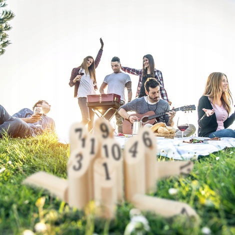 Rzucaj, trafiaj i zdobywaj punkty! Zestaw do gry Kubb numeryczny zapewni dobrą zabawę z rodziną i przyjaciółmi.