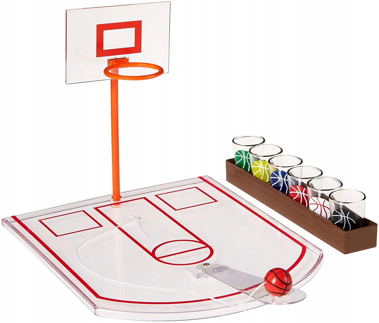 Tej zabawnej gry do picia nie powinno zabraknąć na następnej imprezie! Mini gra w koszykówkę z 6 kieliszkami to prawdziwa gwarancja wesołej imprezy. Sprawdź swoje umiejętności i celnie wrzuć piłkę do kosza. Ty decydujesz, kiedy pić. Strzał sznapsa, gdy zdobędziesz gola lub gdy przegapisz szansę - nie ma ograniczeń dla Twojej kreatywności. Niezapomniane wieczory w miłym towarzystwie są zaprogramowane.