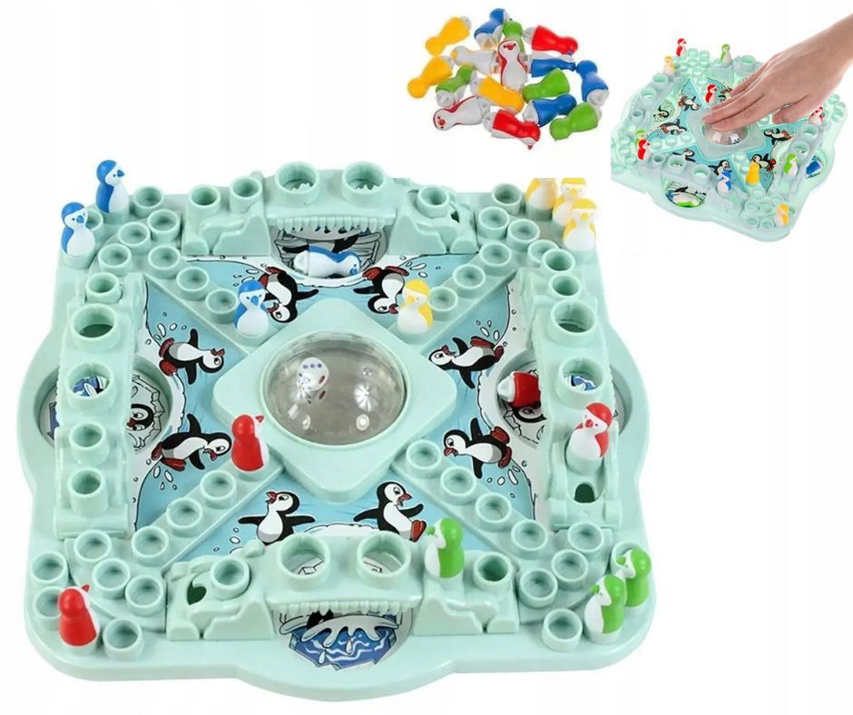 Wyścig Pingwinów to wyjątkowa gra planszowa dla całej rodziny, która łączy klasycznego „chińczyka” z nowoczesnym, kolorowym światem lodowych wyścigów.