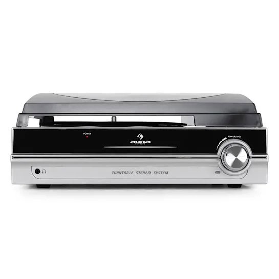 Gramofon Auna dzięki wbudowanym głośnikom może być zarówno używany jako niezależne urządzenie jak i podłączony liniowo do wzmacniacza HiFi.