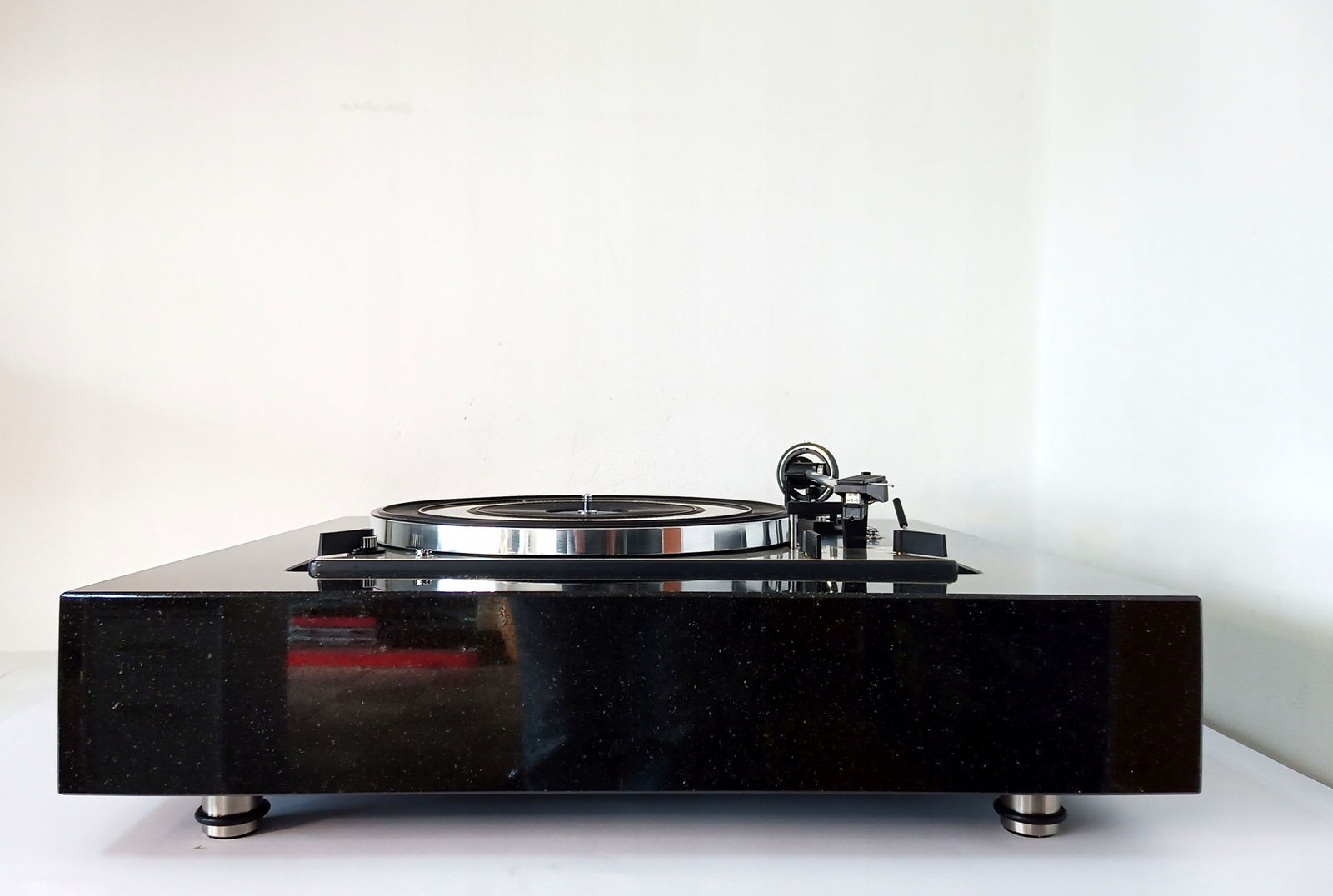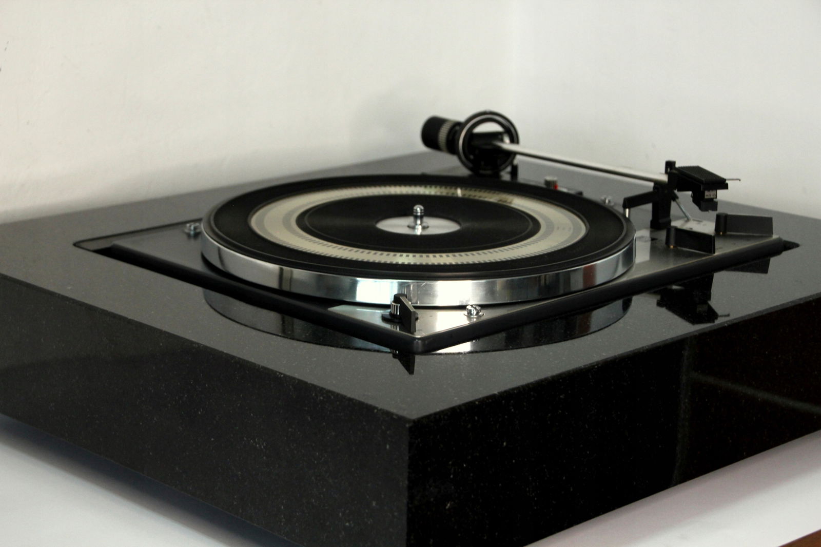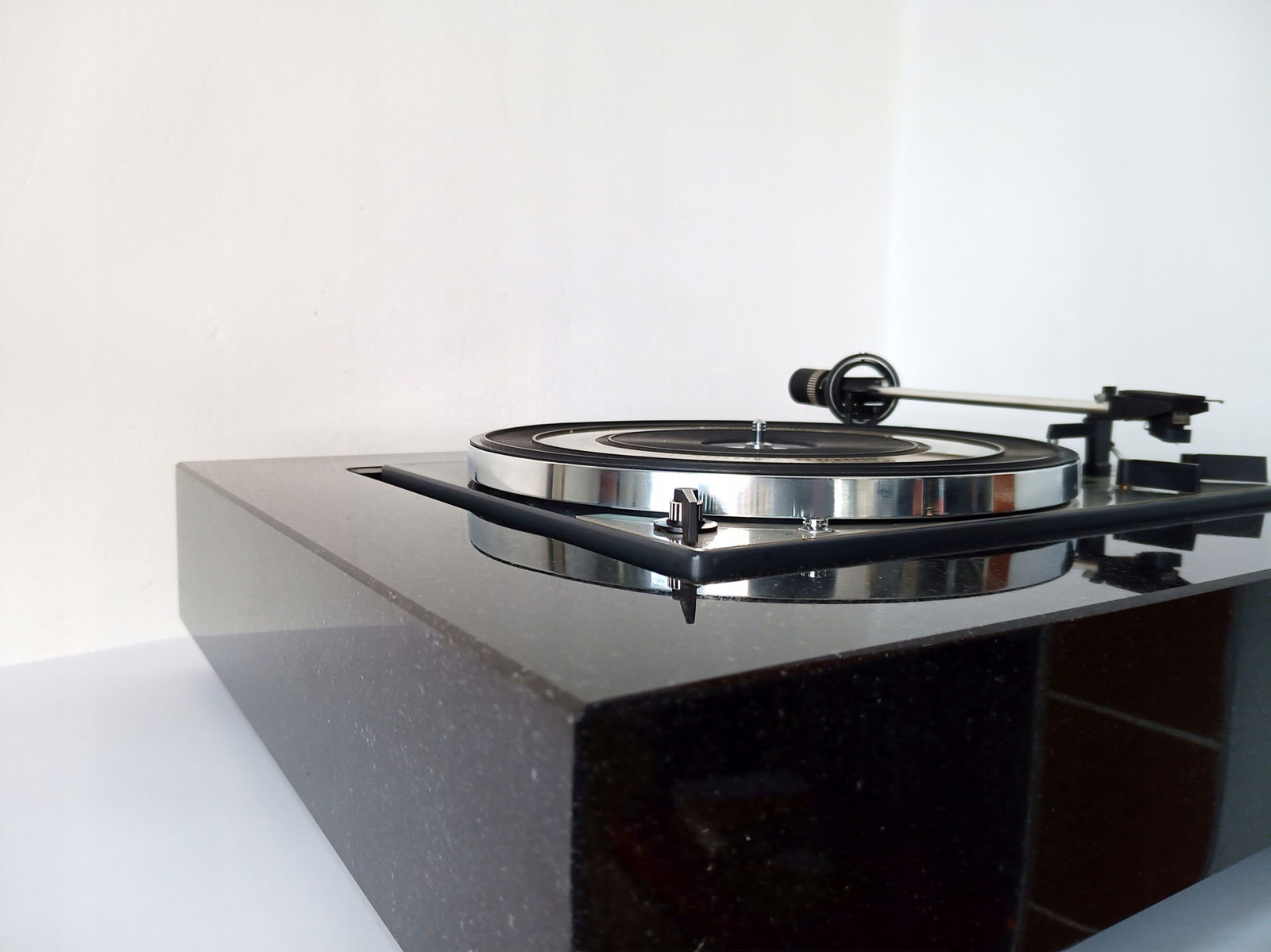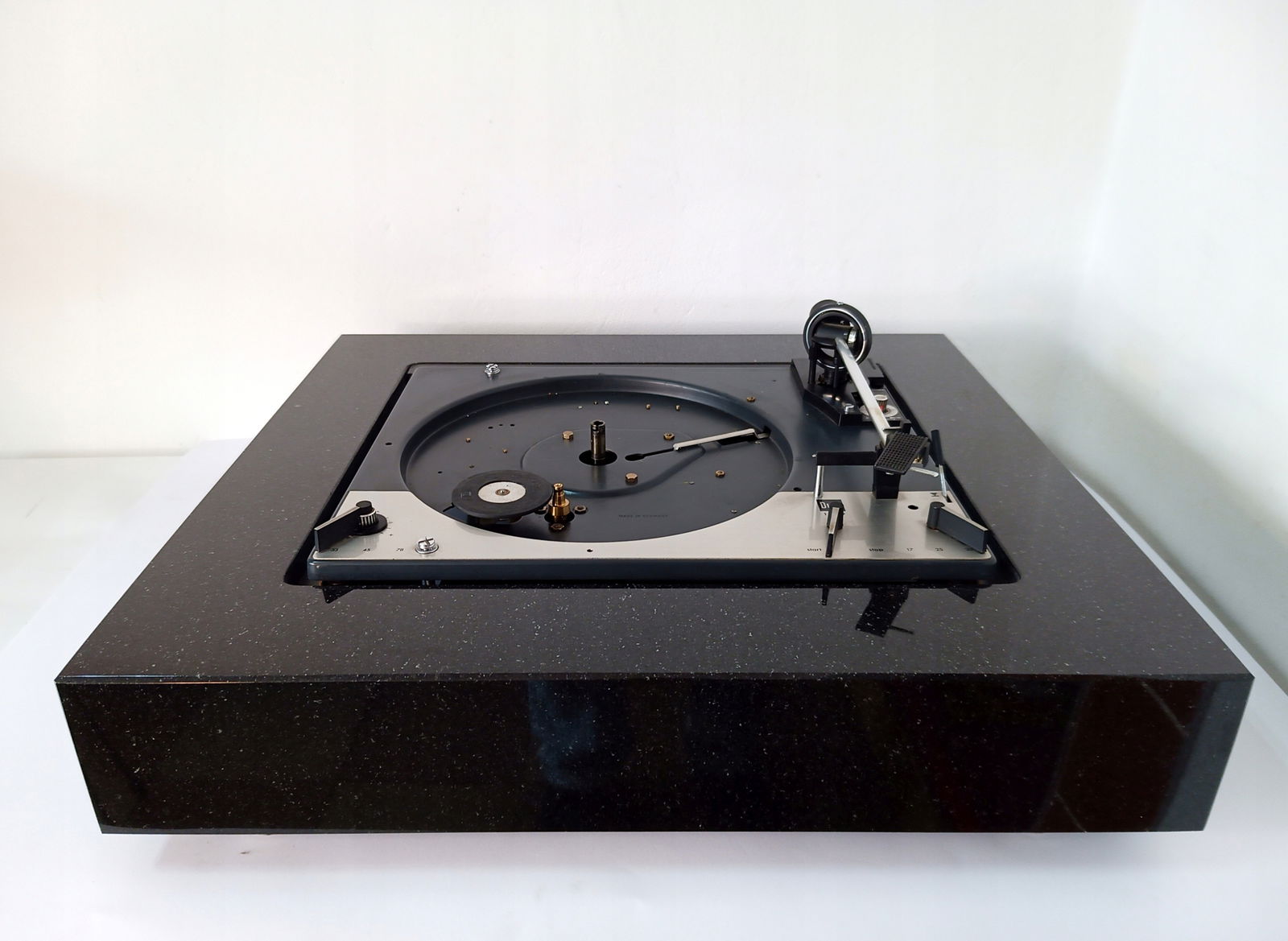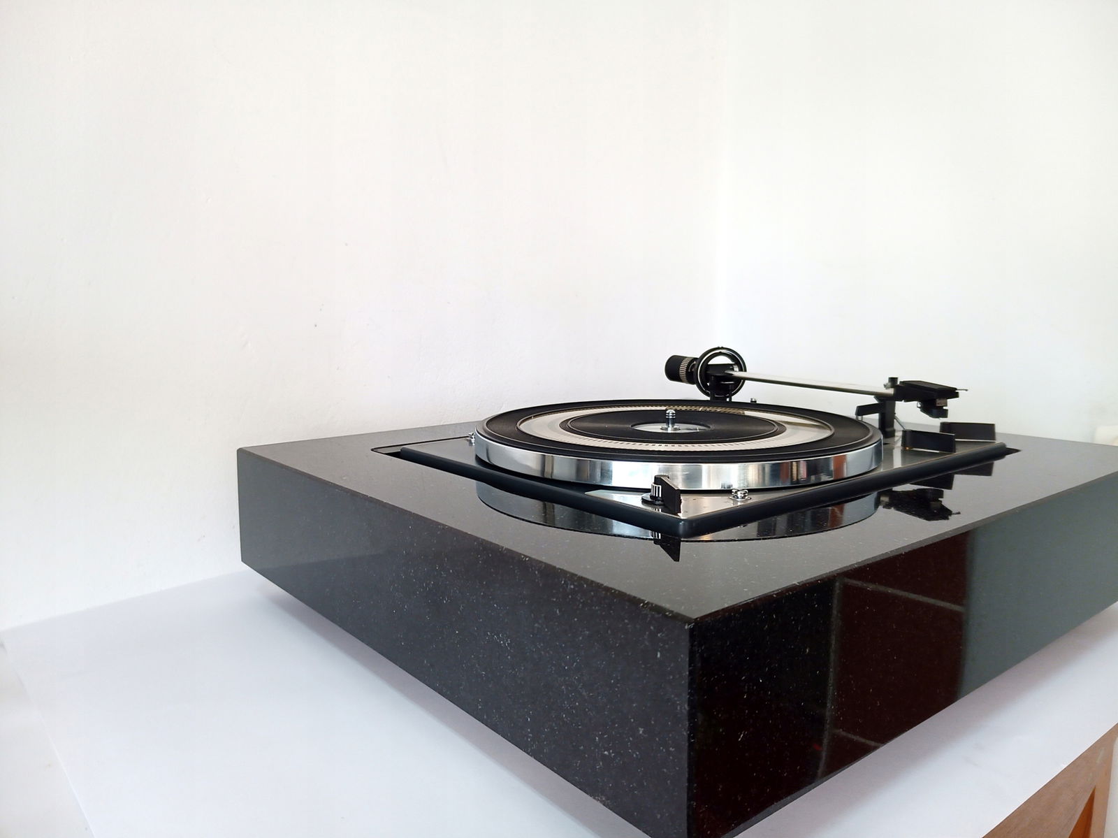 Firma New Rockers oferuje Państwu gramofon Dual 1219, który postanowiliśmy osadzić w granicie. Chcąc zapewnić mu imponujący wygląd, powiększyliśmy jego wymiary w stosunku do oryginału. Plinta została wycięta w jednym kawałku kamienia, dzięki czemu jest naprawdę ciężka i zapewnia stabilność prezentowanego sprzętu.
