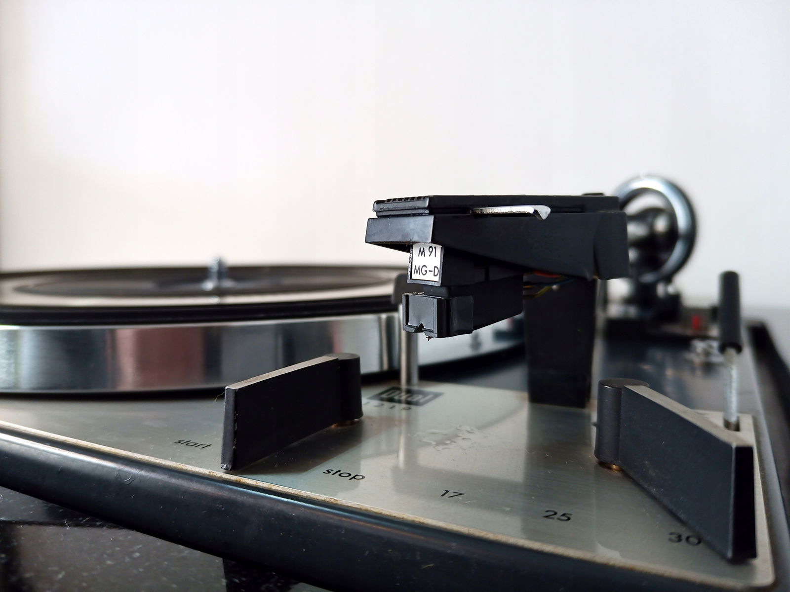 Gramofon został wyczyszczony i przesmarowany, idealnie trzyma obroty, a wkładka Shure M91MGD została wyposażona w nową igłę.