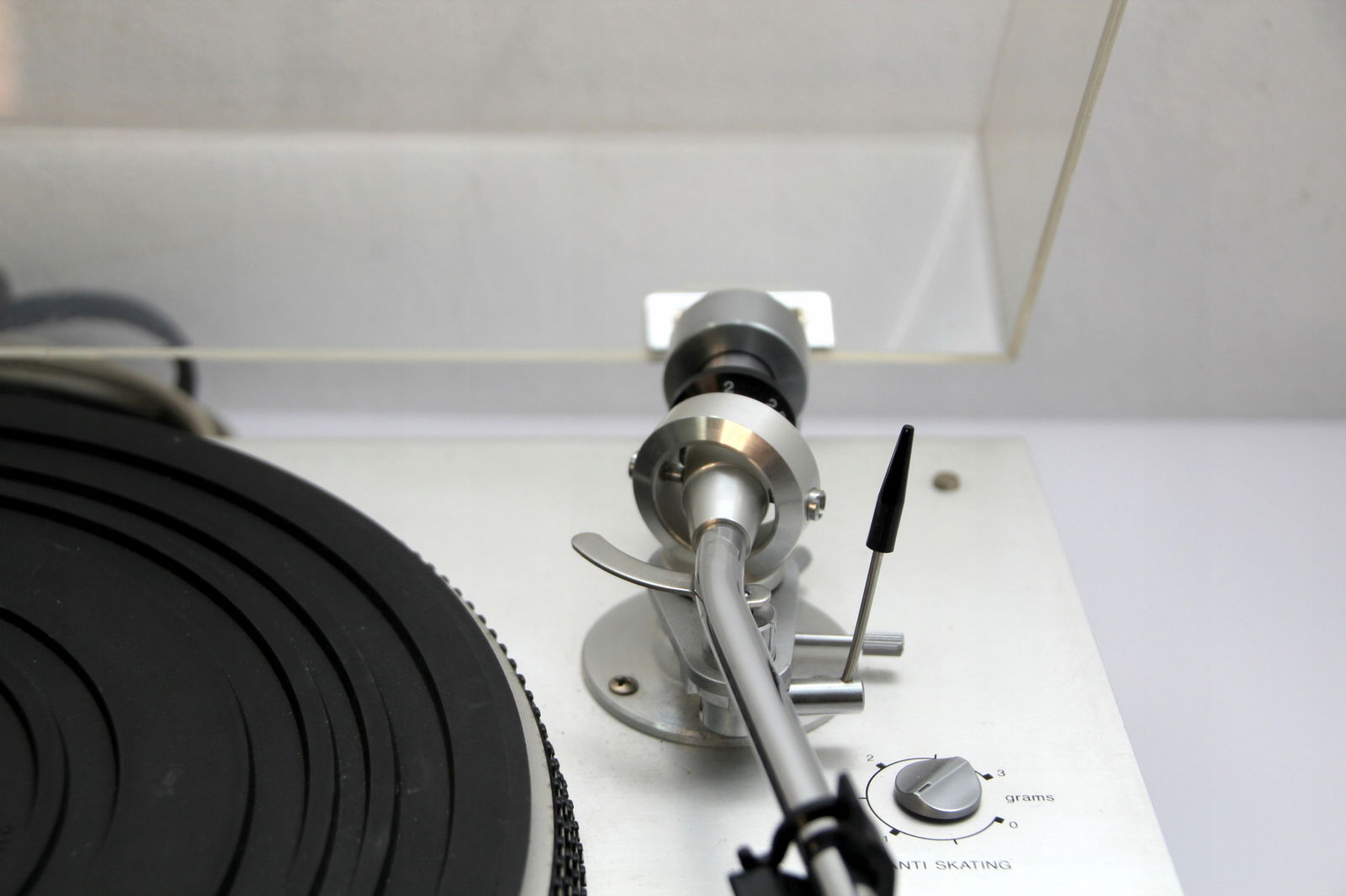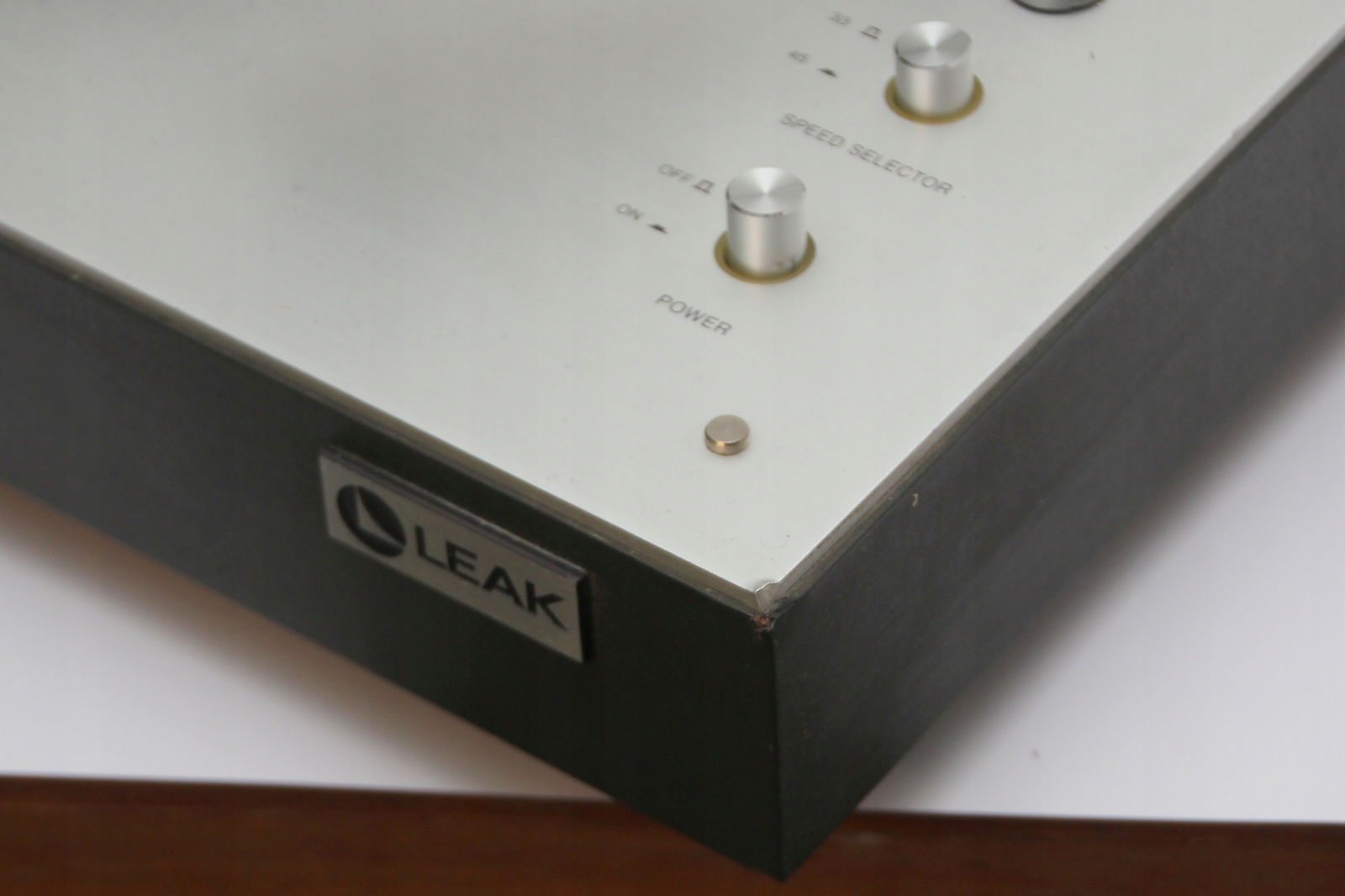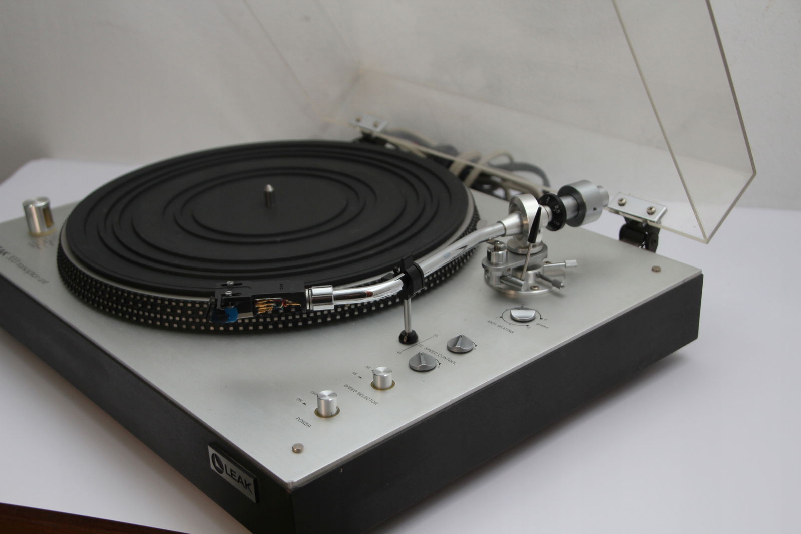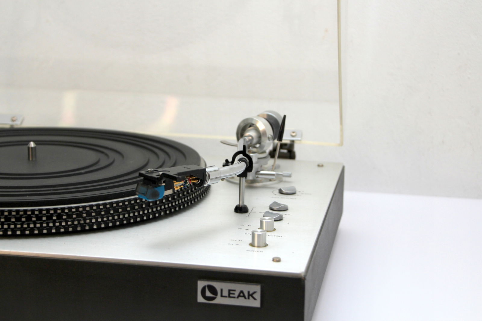 Firma New Rockers oferuje Państwu piękny, w pełni manualny gramofon LEAK 3001 Transcription Unit. Gramofon jest świetnie zachowany, chociaż należy liczyć się z tym, że sprzęt pochodzi z lat '70 ubiegłego wieku, np osłona przeciwkurzowa posiada mikro ryski. Można je spolerować, ale są tak drobne, że raczej nikomu nie będą przeszkadzały. Największą wadą jest drobne wgniecenie prawego rogu (proszę patrzeć na zdjęcia). Gramofon ma zamontowany gruby kabel z końcówkami RCA i wyprowadzone uziemienie. Napęd paskowy pracuje stabilnie i sprzęt doskonale trzyma obroty. Wkładka AT 110E z igłą w bardzo dobrym stanie (zamiennik, ponieważ AT już nie produkuje tej igły). Sprzęt rzadko używany.