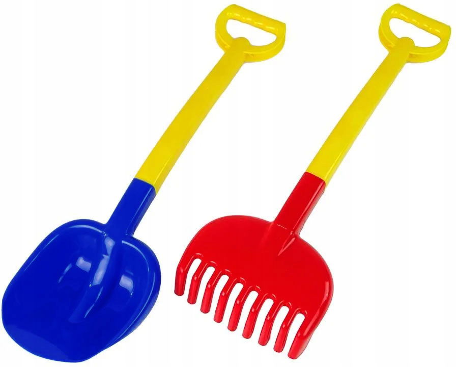 Zestaw Łopata i grabie mają mocny trzonek zakończony poręcznym chwytakiem, są wytrzymałe i poręczne. Łopata zapewni niesamowitą zabawę na plaży, w piaskownicy czy ogrodzie. natomiast grabie są idealnym narzędziem dla małego ogrodnika.