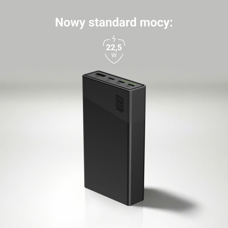 Green Cell PowerPlay20s - Power Bank 20000 mAh z szybkim ładowaniem USB-A QuickCharge 3.0 oraz 2x USB-C Power Delivery 22.5W (czarny)