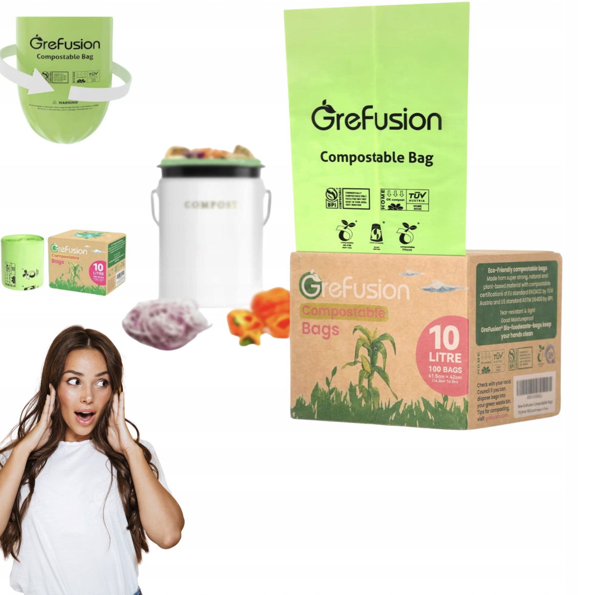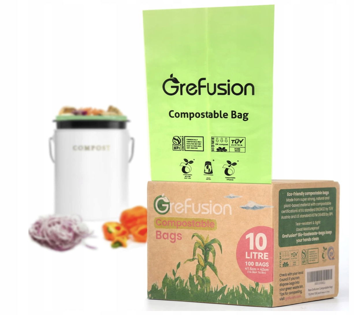 Worki GreFusion o pojemności 10 litrów to ekologiczne i praktyczne rozwiązanie do codziennego gospodarowania odpadami organicznymi. Wykonane z kompostowalnych materiałów PBAT + PLA, całkowicie biodegradowalne i spełniające europejską normę EN 13432 oraz amerykańską ASTM D6400, rozkładają się naturalnie w ciągu 180 dni.