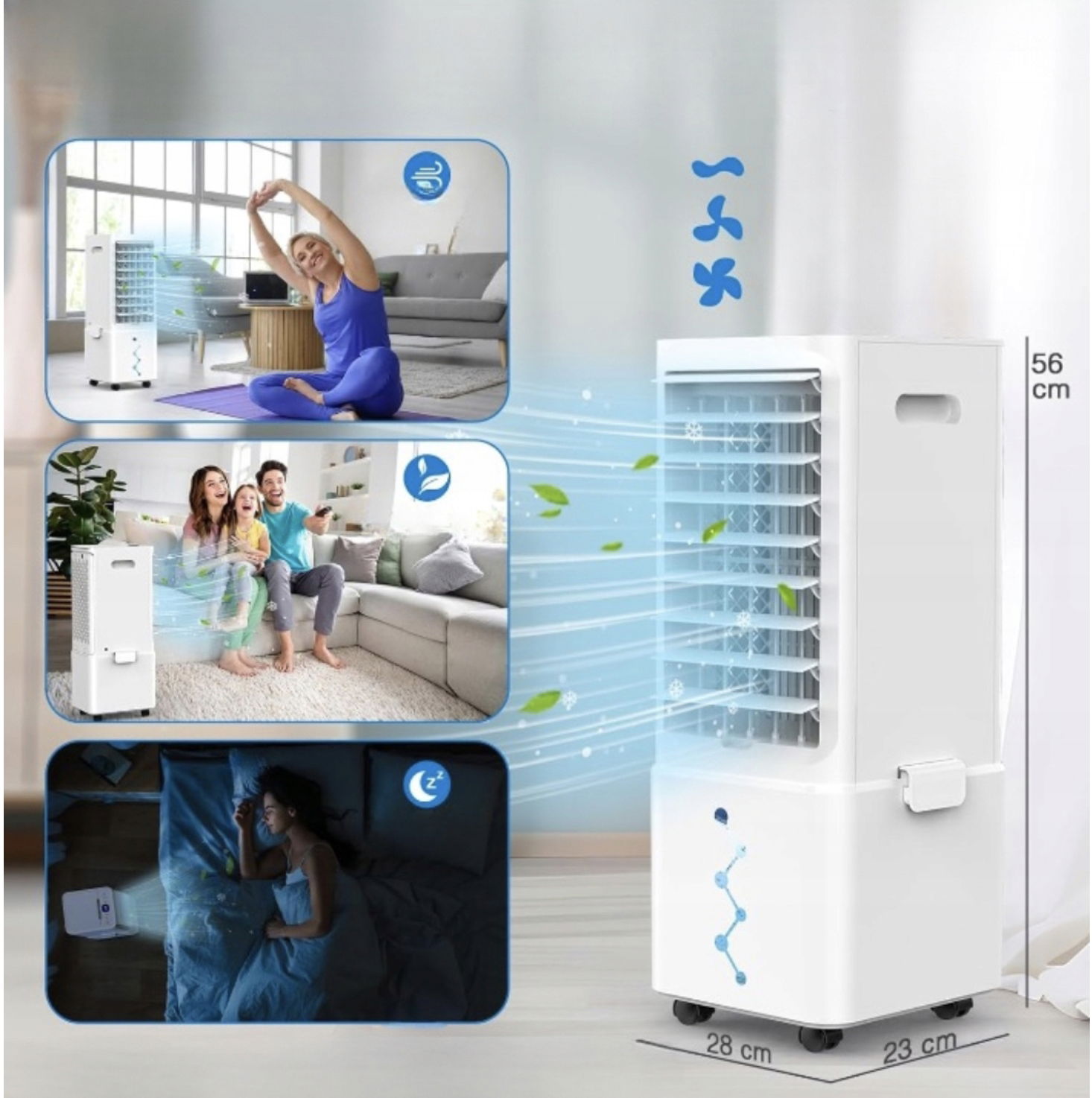 ✅ Chłodzenie, nawilżanie i wentylacja w jednym – komfort przez cały rok.