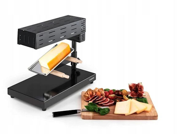- Elegancki, tradycyjny grill raclette w kolorze ciemny metalik do kreowania pożywnych dań z topionego sera na każdą okazję.