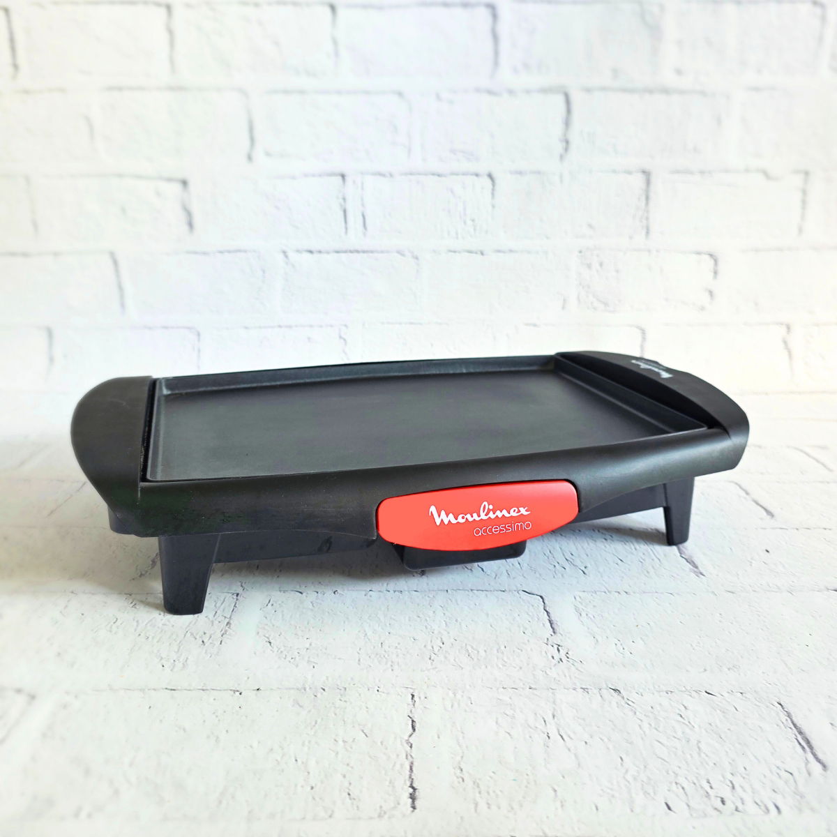 Grill elektryczny płyta MOULINEX Plancha Accessimo CB560811 pozwoli Ci zorganizować posiłki dla całej rodziny. Możesz go ustawić na tarasie, w kuchni czy też na stole w jadalni. Prosto i szybko przygotujesz dania mięsne, warzywa, grillowane owoce morza czy też chrupiące pieczywo. Nie musisz używać do tego dużej ilości tłuszczu.