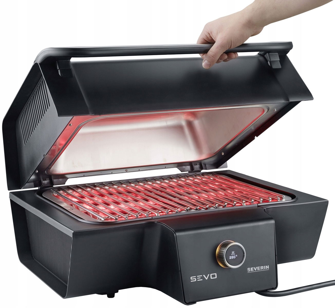 Grill elektryczny SEVERIN PG8106 posiada strefę szybkiego grillowania Boost Zone – 500 °C do perfekcyjnego przyrumieniania mięsa, oraz technologię podwójnego grzania zapewnia maksymalną moc. Dzięki funkcji Slow Cooking - grillowanie pod przykryciem i dokładnie ustawionej temperaturze urządzenie nadaje się idealnie do pieczenia potraw takich jak szarpana wieprzowina lub żeberka. Gwarantowany sukces w grillowaniu dzięki dokładnemu ustawieniu temperatury na wyświetlaczu cyfrowym OLED w zakresie 80–500 °C i na wbudowanym termometrze rdzeniowym (10–300 °C). Dioda LED pokazuje status urządzenia (gotowość do pracy - niebieska, 320 ° C - pomarańczowa, 320 - 500 ° C - czerwona). Przy zamkniętej pokrywie można grillować w temperaturze do 320°C.