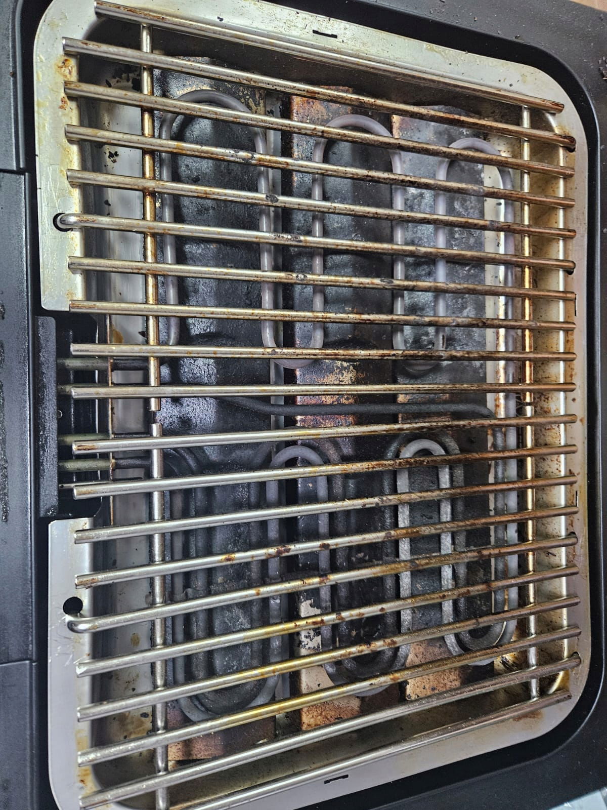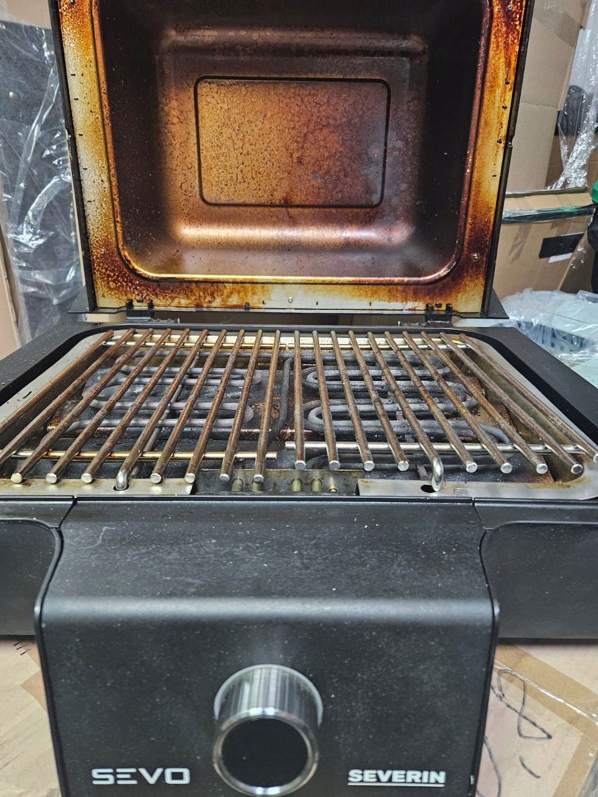Dwuczęściowy dzielony ruszt ze stali nierdzewnej zapewnia najlepsze wyniki i łatwe czyszczenie. Większość części można zdejmować w celu łatwego czyszczenia: osłonę przeciwwietrzną, ruszt do grillowania, element grzewczy, prowadnice tacki odciekowej tłuszczu, tackę wodną. Specjalnie zaprojektowana tacka odciekowa tłuszczu zapewnia optymalne rozchodzenie się ciepła, a woda w tacce zapewnia łatwiejsze czyszczenie i ochronę przed przypaleniem się tłuszczu i powstaniem zapachu spalenizny.