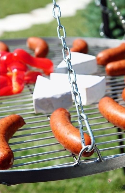 Grill na trójnogu 180 cm, ruszt stal nierdzewna 80 cm. Grill ogrodowy z rusztem ze stali nierdzewnej jest idealnym rozwiązaniem dla osób ceniących sobie spędzanie czasu na świeżym powietrzu. Koneserzy dobrego smaku na pewno docenią możliwość grillowania jedzenia nad ogniem ze zwykłego ogniska, co jest równoznaczne z brakiem chemicznych dodatków, które można spotkać w rozpałkach do typowego grilla.
