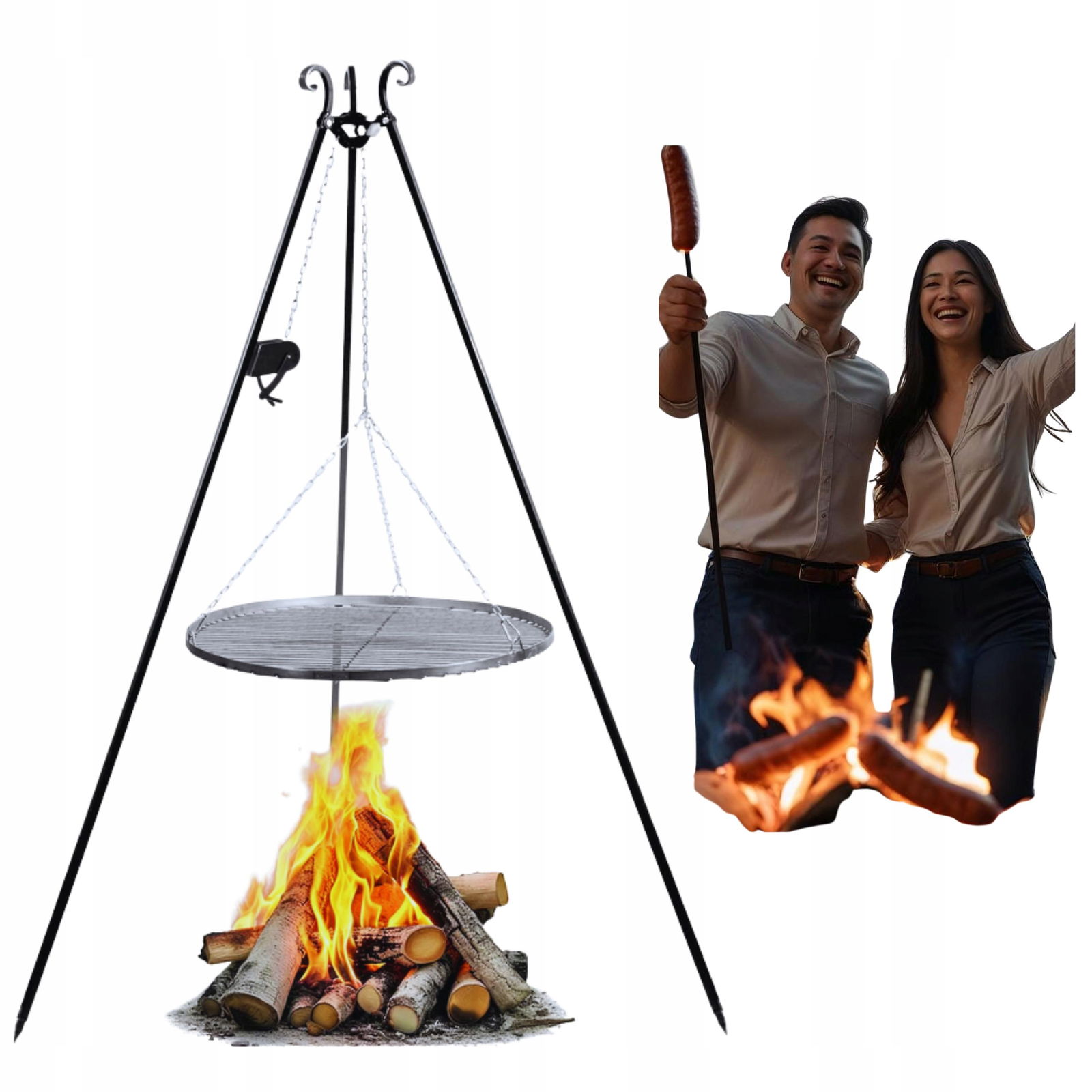 ☑️Dzięki stabilnemu trójnogowi i wygodnej regulacji wysokości rusztu, możesz przygotować ulubione potrawy tam, gdzie tylko zechcesz – szybko, bezpiecznie i w wyjątkowej atmosferze.