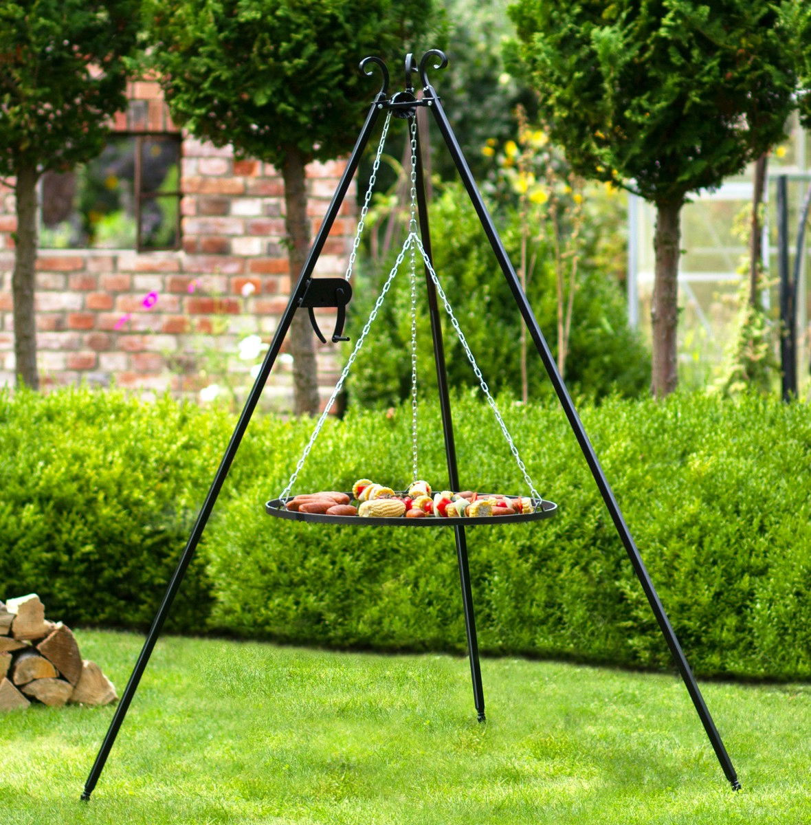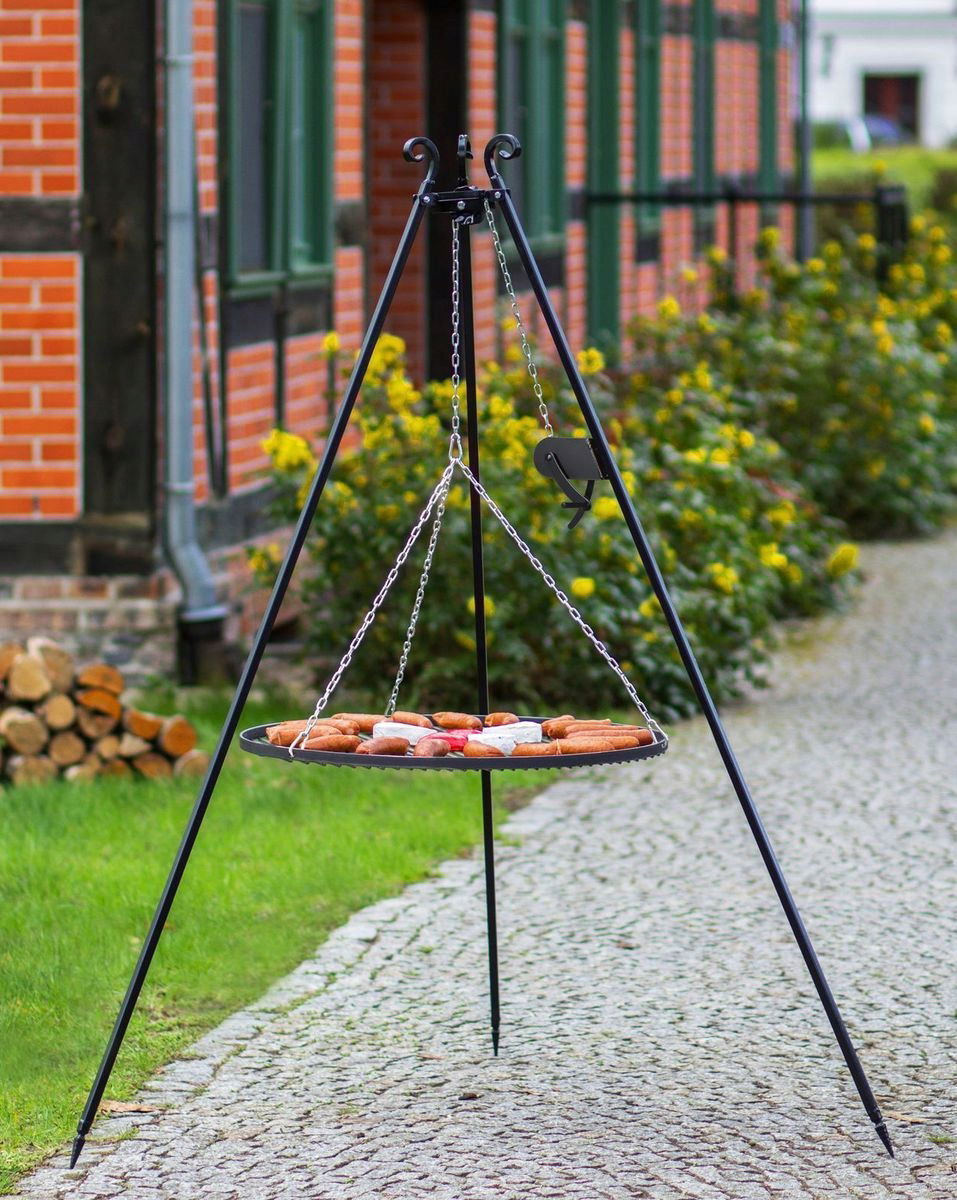 ⭐️Oferujemy solidny grill ogrodowy na trójnogu o wysokości 180 cm z praktycznym kołowrotkiem, który sprawdzi się zarówno podczas rodzinnych grillowań, jak i większych imprez plenerowych. To połączenie klasycznego designu z nowoczesną funkcjonalnością, które doceni każdy miłośnik gotowania na świeżym powietrzu.