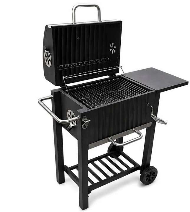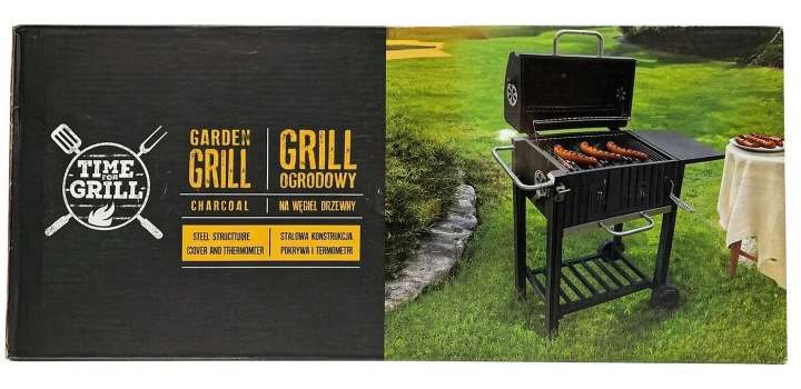 ✅ Wyposażenie: pokrywa z termometrem, ruszt dwupoziomowy, popielnik, półka dolna