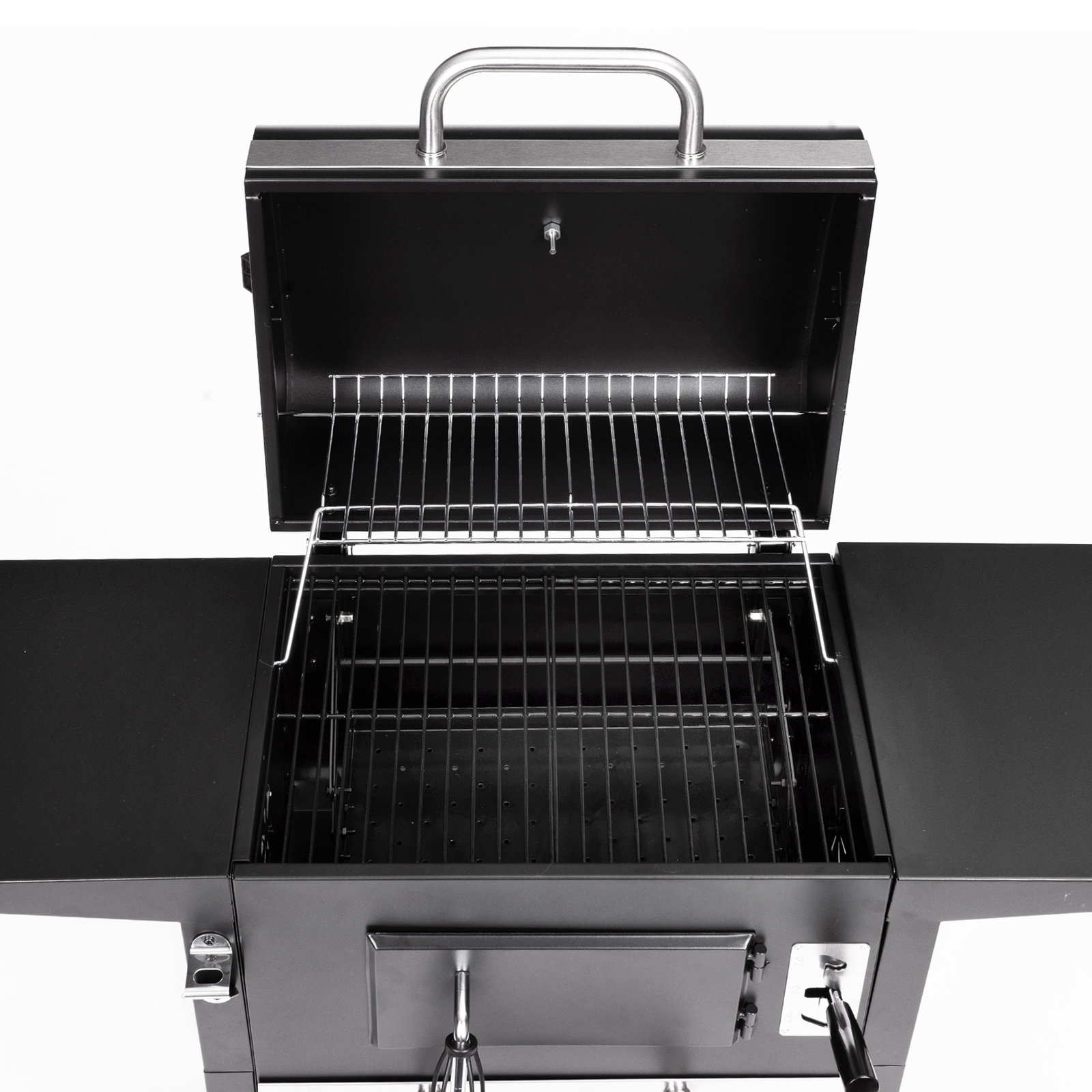 - Dzięki nim możesz bez problemu uzupełnić węgiel w trakcie pracy, bez konieczności podnoszenia pokrywy.