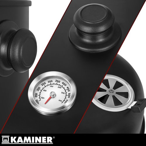 Grill ogrodowy węglowy Kaminer 2w1 wędzarnia z termometrem 2 ruszty 8 haczyków