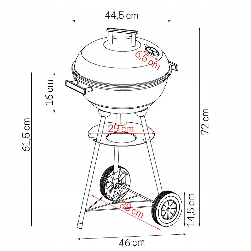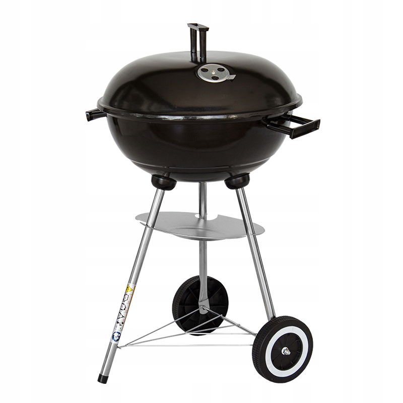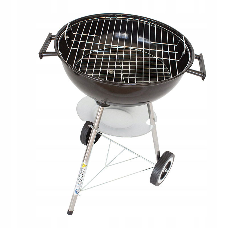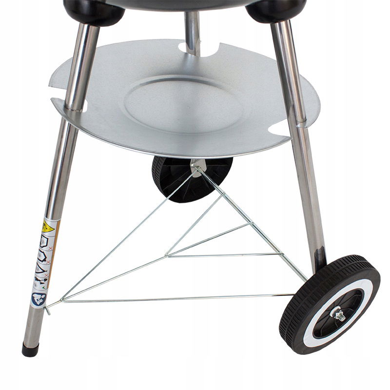 Grill posiada również dwie rączki oraz kółka, które pozwalają na bezproblemowe przemieszczanie.