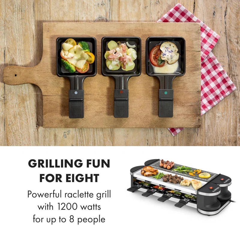 Stwarza to wiele możliwości ustawienia grilla raclette na stole: jak zwykle jako kompaktowy grill, rozkładany wzdłuż jako długi drążek, w poprzek rogu, a nawet jako litera v.