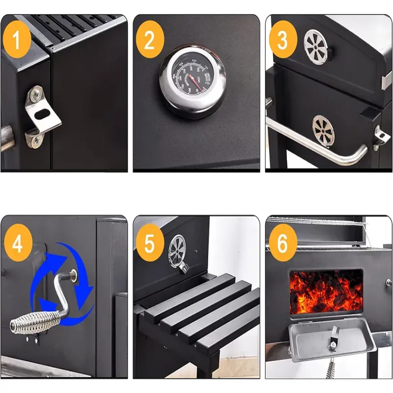 Zintegrowany termometr pozwala Ci monitorować temperaturę wewnątrz grilla, zapewniając idealne warunki do pieczenia mięsa według Twoich preferencji. Dzięki temu możesz być pewien, że Twoje potrawy będą zawsze idealnie przygotowane.