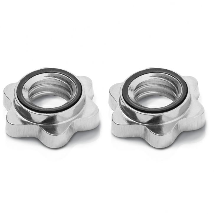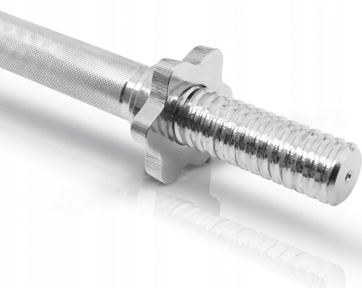 W zestawie z gryfem znajdują się 2 zaciski gwiazdkowe do mocowania ciężarków, które zapewniają bezpieczeństwo w trakcie treningu.