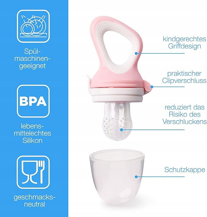 Higieniczne i łatwe czyszczenie: pierścienie do zagryzania są wykonane z miękkiego silikonu o jakości dostosowanej do kontaktu z żywnością. Są łatwe do sterylizacji lub zmywania.