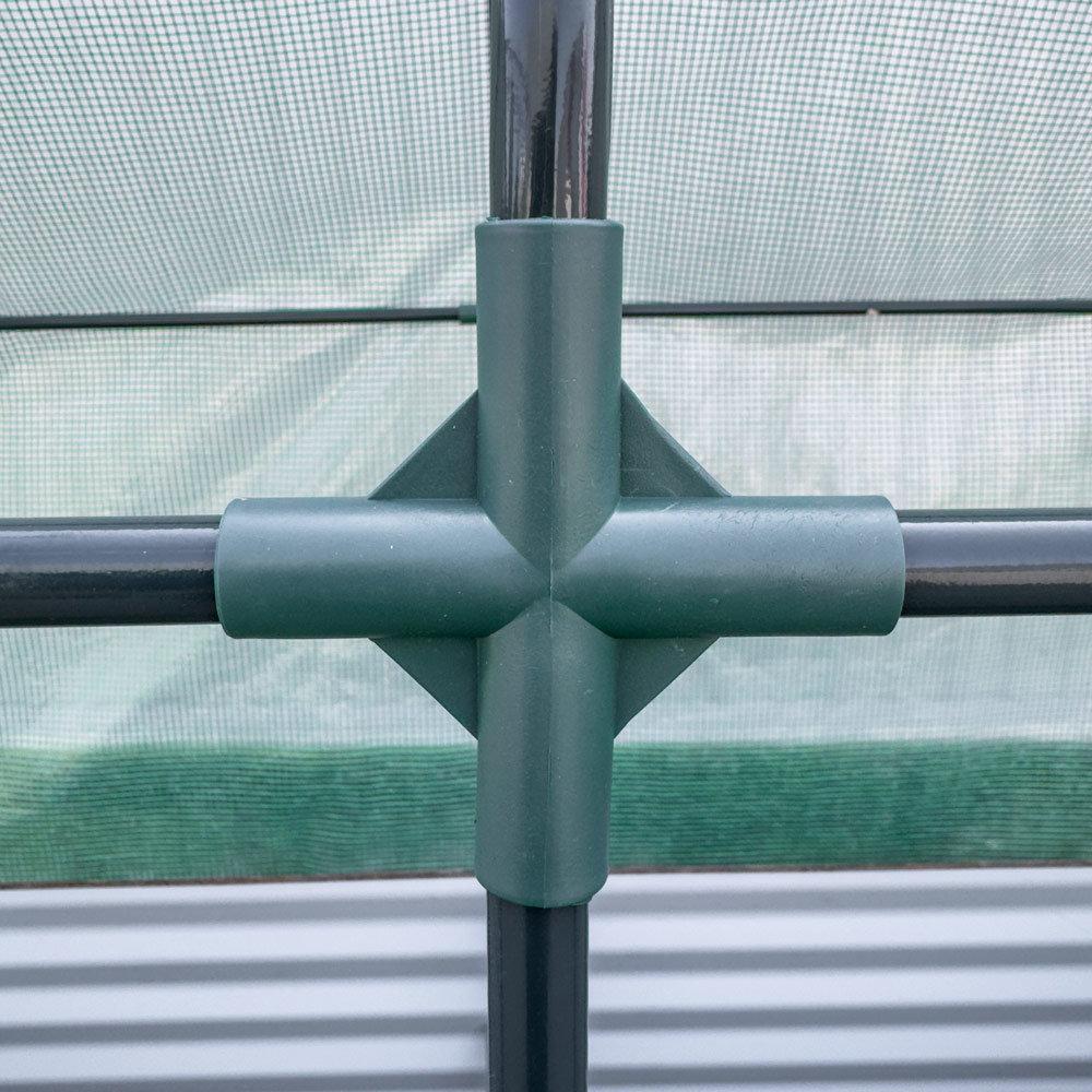 Dzięki zintegrowanej osłonie foliowej przeniesiesz swoje ogrodnictwo na zupełnie nowy poziom! Osłona jest solidnie przykręcona do stalowej konstrukcji grządki, co zapewnia maksymalną stabilność. Dodatkowo, folię można przywiązać bezpośrednio do konstrukcji wsporczej, co zapewnia doskonałą odporność nawet na silny wiatr. Ta praktyczna, zwijana osłona wykonana z trwałej folii pomoże przedłużyć okres wegetacyjny roślin, zadbać o szybsze kiełkowanie, a ponadto stanowi dodatkową ochronę dla sadzonek. Folię i grządkę można stosować oddzielnie!