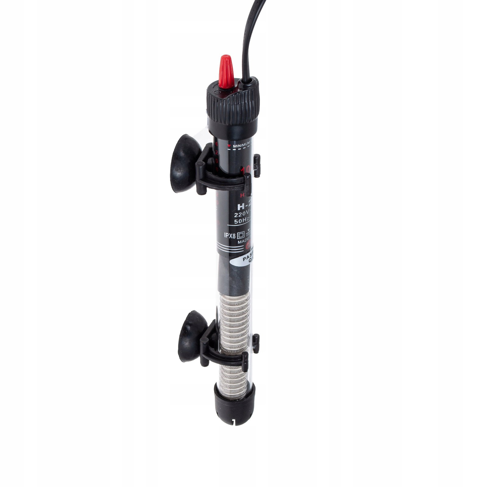 Wbudowana lampka kontrolna wskazuje tryb pracy grzałki (włączona/wyłączona), a dołączone przyssawki ułatwiają montaż na ściance akwarium.