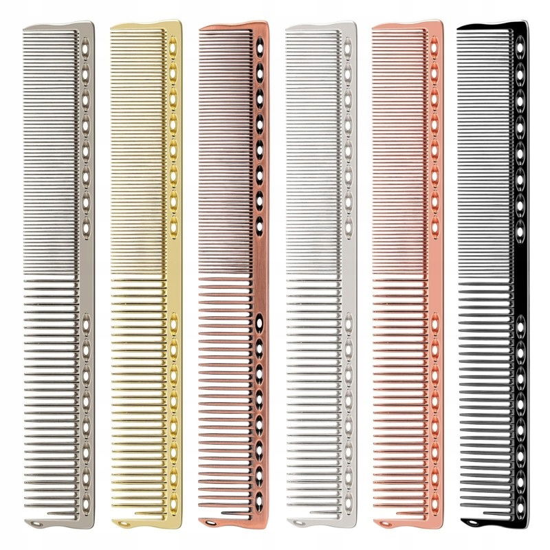 Profesjonalny metalowy złoty grzebień do strzyżenia. Jedyny w swoim rodzaju, przeznaczony wyłącznie dla najbardziej wyróżniających się stylistów.