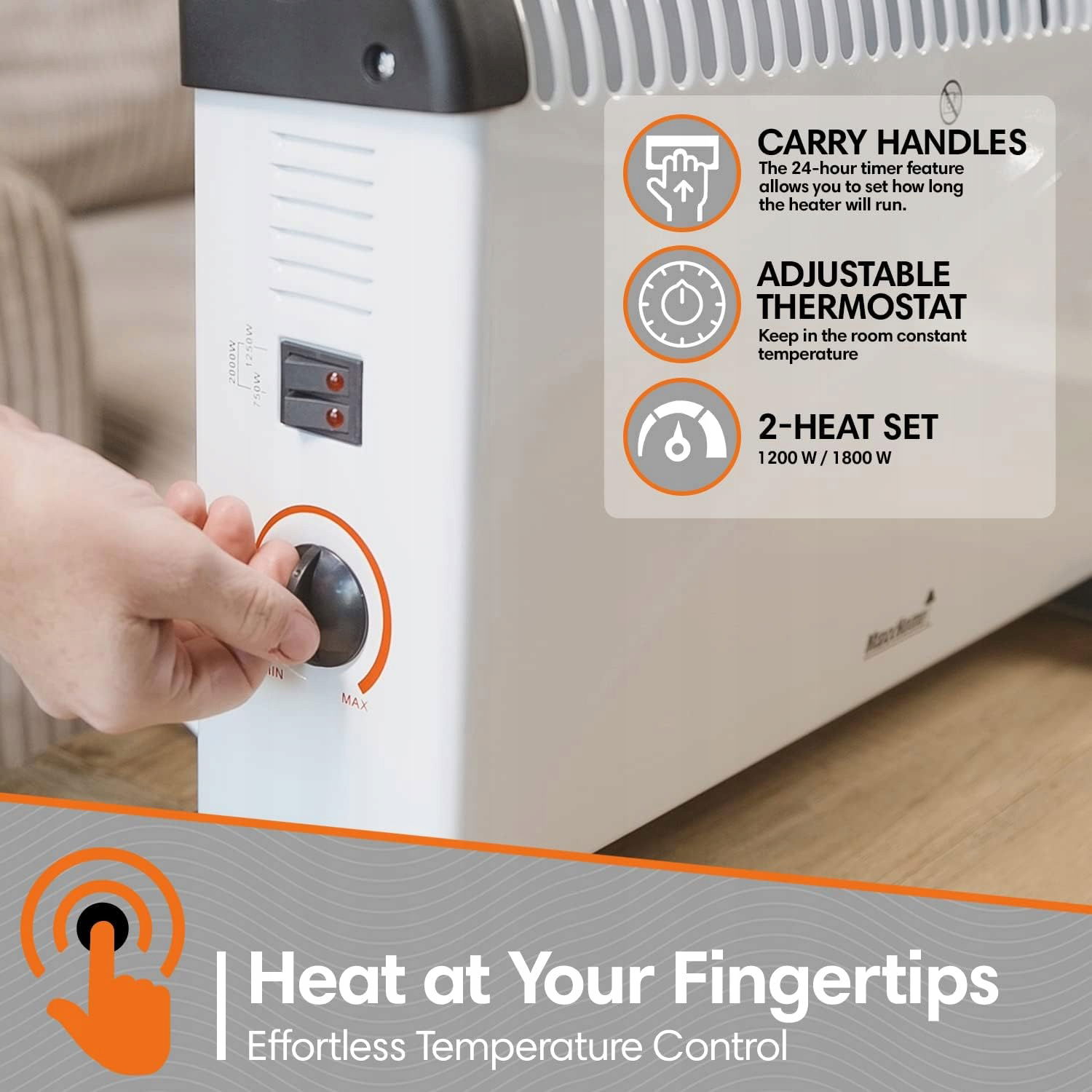 Regulowana temperatura pokoju: Ustaw żądaną temperaturę pokojową za pomocą mechanicznego termostatu.