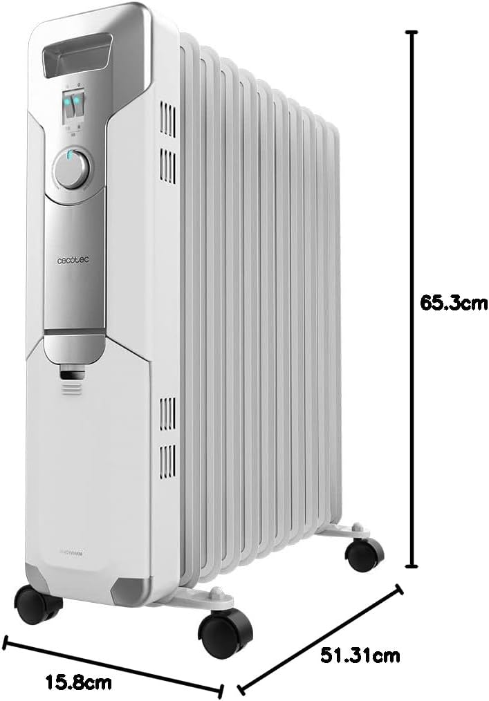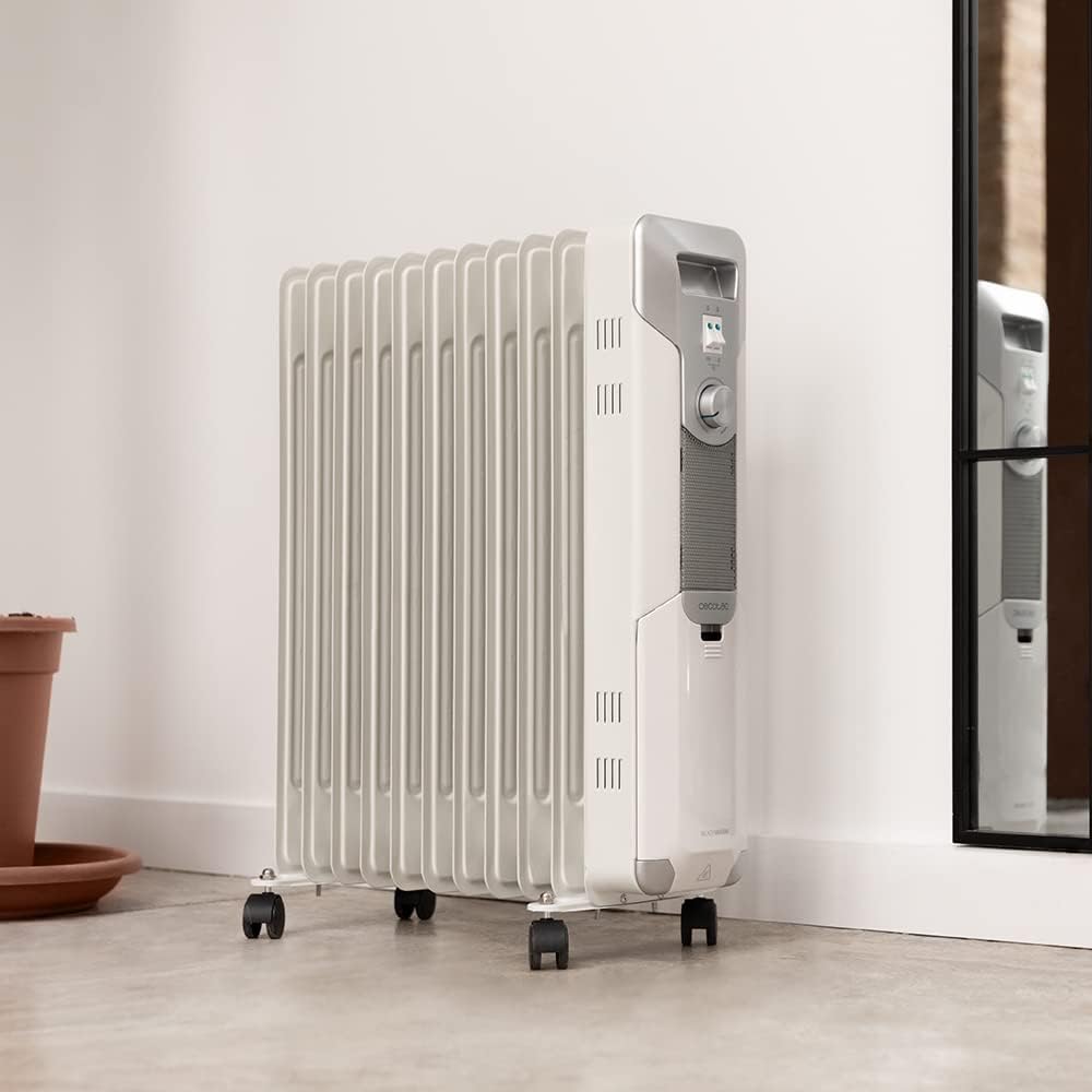 Cecotec Elektryczny grzejnik olejowy ReadyWarm 11000 Space. 11 moduów, niskie zużycie, 2500 W, 3 poziomy, uchwyt kablowy, system bezpieczeństwa, koła, 25 m2