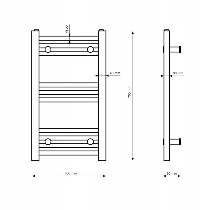 GRZEJNIK ŁAZIENKOWY 40/70 cm CZARNY KALORYFER DRABINKOWY NOWOCZESNY BRENO