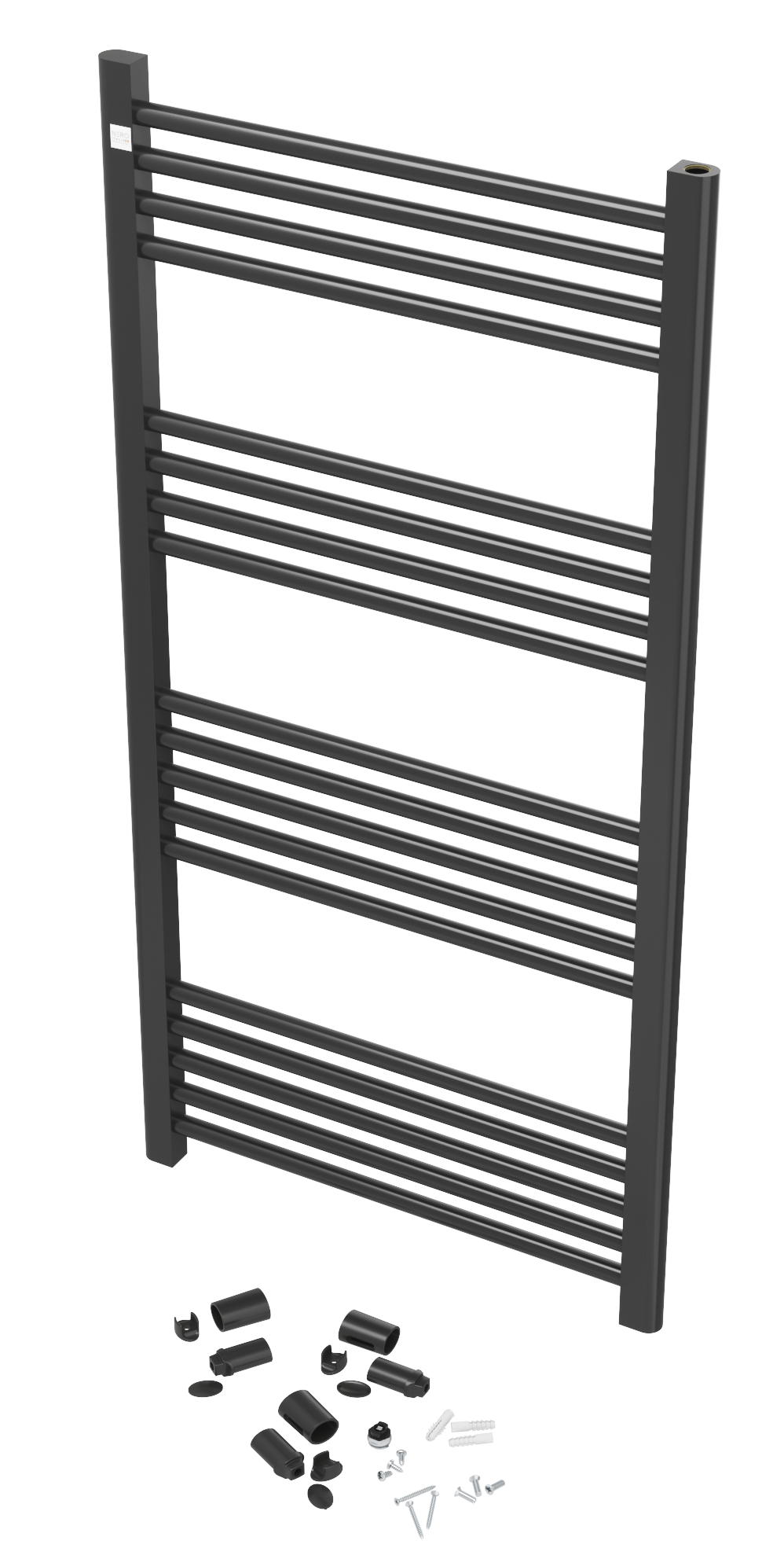 W przypadku grzejników o wysokości 140 cm montaż odbywa się przy użyciu 4 uchwytów, mniejsze modele posiadają 3 punkty montażowe - dwa na górze i jeden na dole.