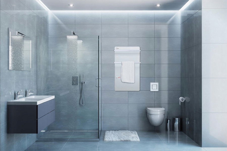 Wysokiej jakości szklany grzejnik łazienkowy do pomieszczeń do 60 m³ (~25 m², przy wysokości sufitu ~2, 40 m)