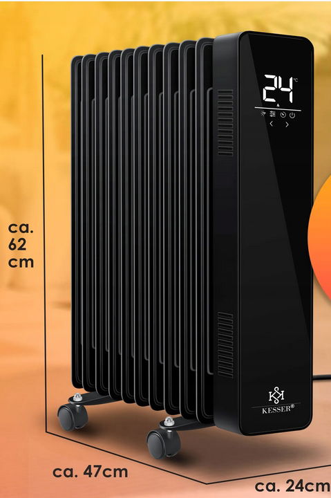 Grzejnik olejowy KESSER to doskonała alternatywa dla klasycznych grzejników ściennych. Sprawdzi się w salonach, sypialniach, garażach, domkach letniskowych i wielu innych miejscach. Dzięki intuicyjnemu sterowaniu i nowoczesnym funkcjom SmartHome, zapewnia komfort cieplny przy minimalnym zużyciu energii.
