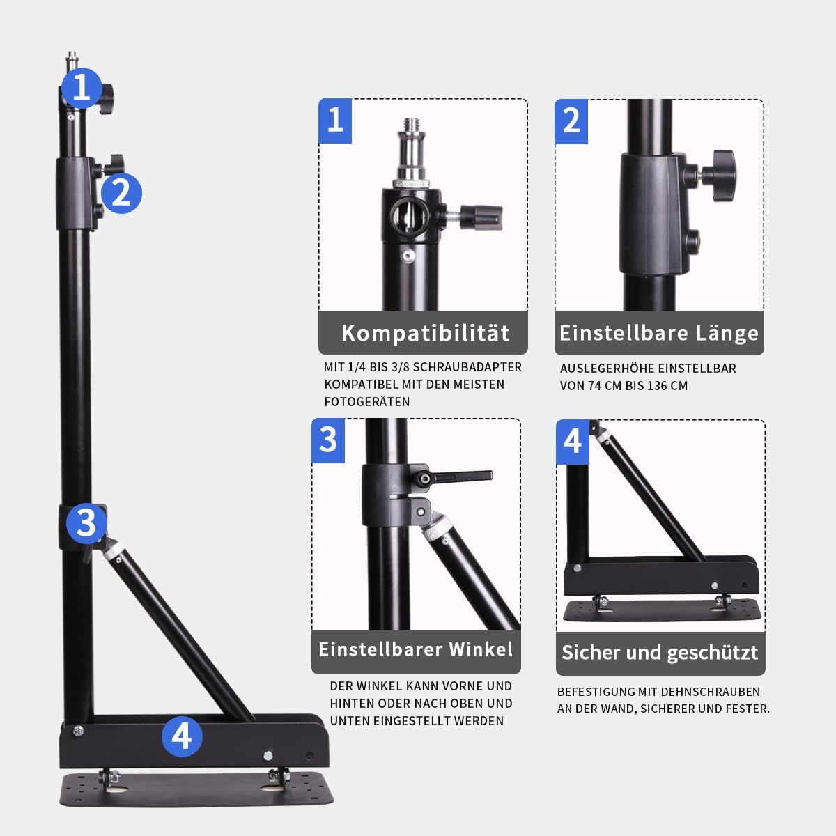 Regulacja długości i kąta umożliwia dostosowanie urządzenia do większości potrzeb nagrywania. Kompatybilność z różnymi akcesoriami fotograficznymi dodaje wszechstronności.