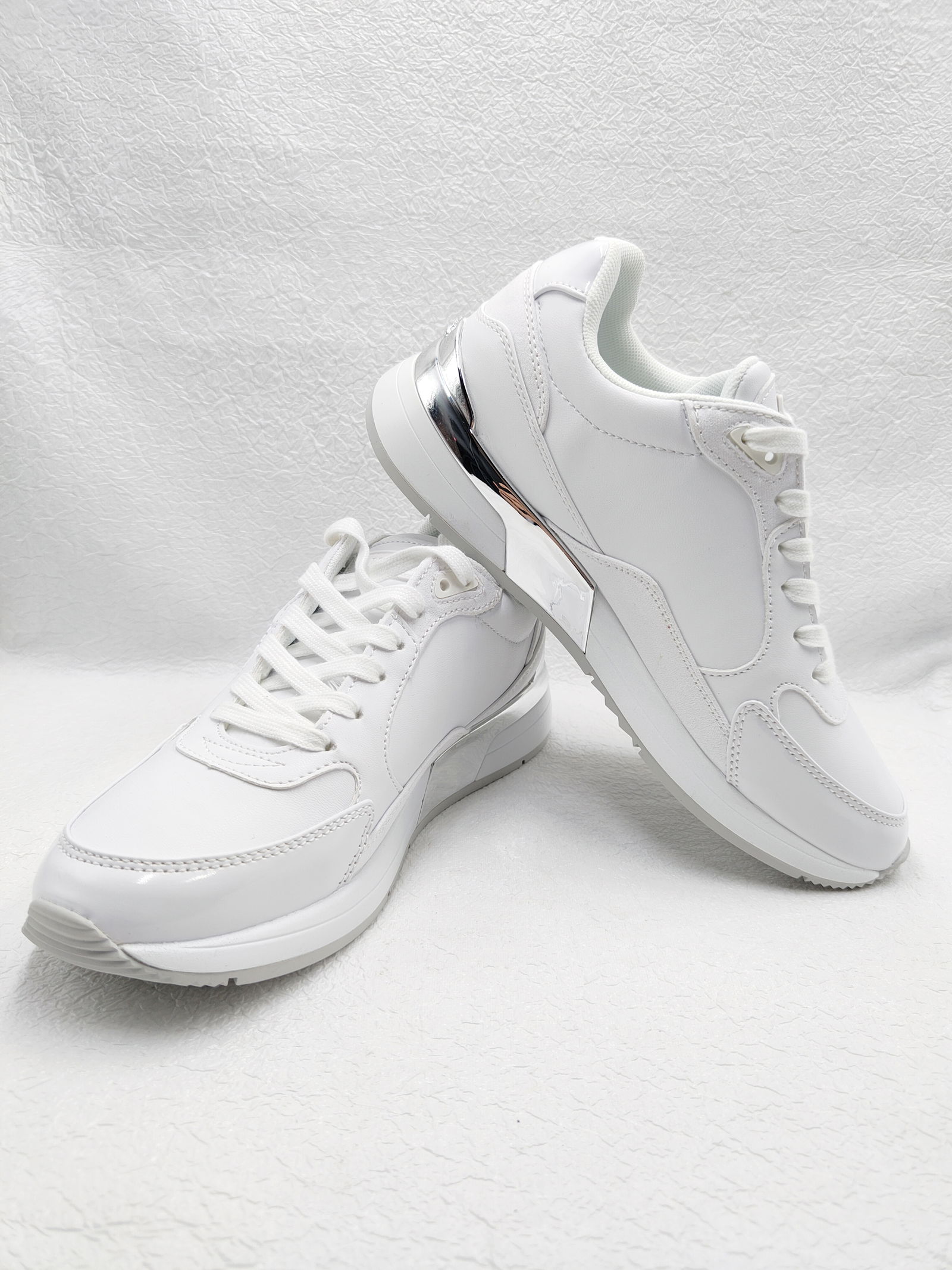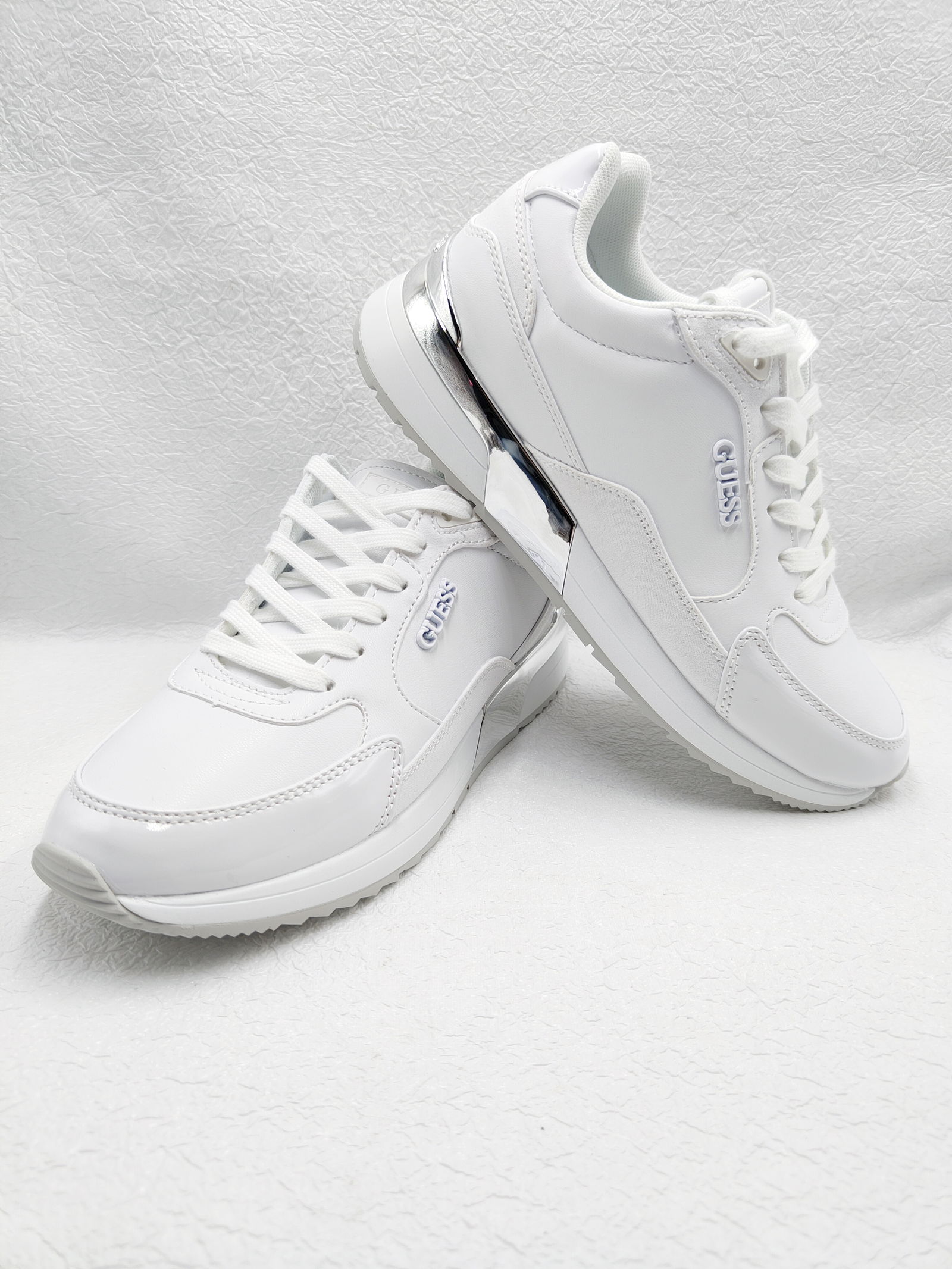 - w kolorze białym z metalicznymi, srebrnymi detalami - Cholewka wykonana jest ze skóry ekologicznej i materiału tekstylnego. - Posiadają laminowane wstawki, w tym charakterystyczny metaliczny pasek za piętą. - Wkładka i wyściółka: materiałowe - Sznurowane z gumową podeszwą Model: FL8MOXELE12
