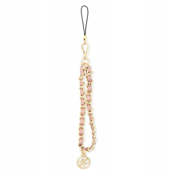 Zawieszka do telefonu marki Guess, która jest eleganckim dodatkiem do smartfona lub niebanalnym dodatkiem do stroju. Można używać jej na nadgarstku aby uchronić telefon przed upadkiem lub jako modny dodatek do torebki, paska od spodni czy kluczy.