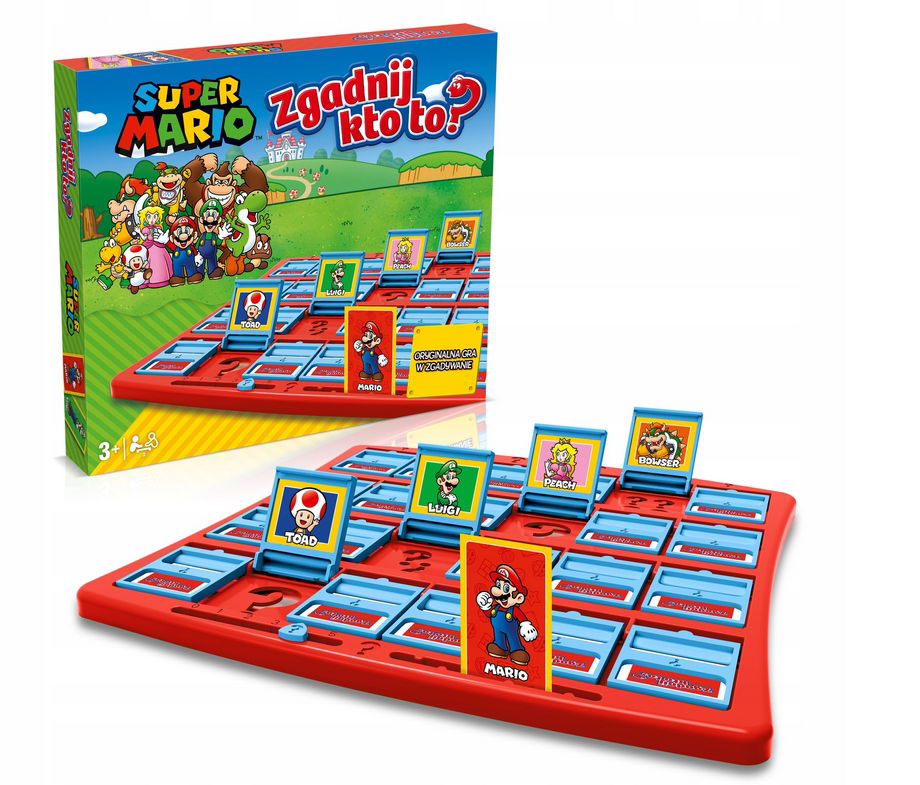 Czy Twój bohater jest hydraulikiem i ma wąsy? Jeśli odpowiedź brzmi TAK, jesteś bardzo blisko wygranej! Na szczęście świat Super Mario to nie tylko główny bohater. Na planszy Zgadnij kto to? Super Mario znajdziesz 24 bohaterów, spośród których ty i Twój przeciwnik losujecie swoją postać. Kartę przeciwnika musisz zidentyfikować poprzez proste pytania, opierające się na odpowiedziach TAK i NIE. Gra jest dostosowana dla dzieci już od 3 roku życia!