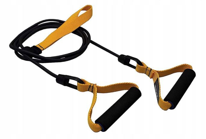Guma oporowa treningowa marki Finis umożliwia efektywny trening poza basenem, w domu, w parku, w podróży. Ćwicząc z gumą i symulując ruchy pływackie wzmacnia się górny korpus ciała, buduje mięśnie, siłę, wytrzymałość. Guma w kolorze żółtym: słaby opór
