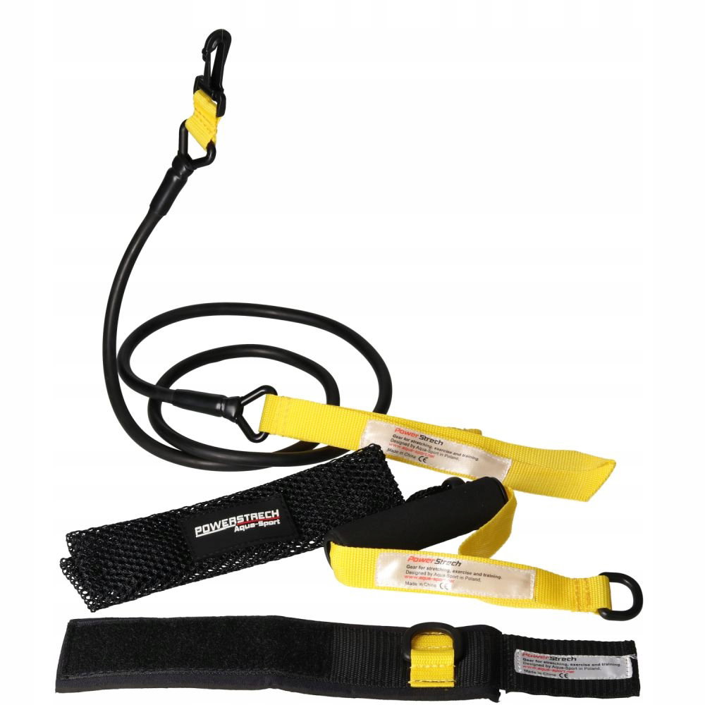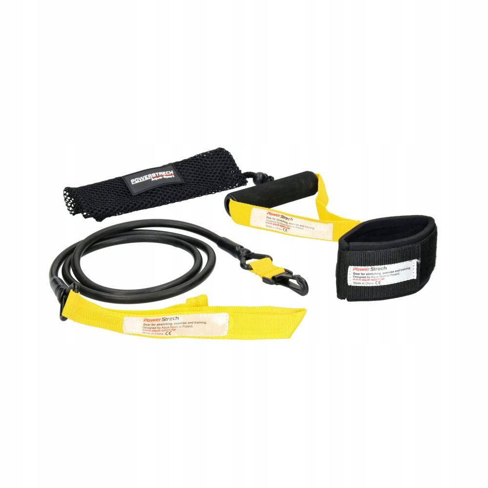 AQUA-SPORT POWERSTRECH DRYLAND SET YELLOW RESISTANCE GUMA DO ĆWICZEŃ NA LĄD Z UCHWYTEM I PASKIEM NA KOSTKI AS32080